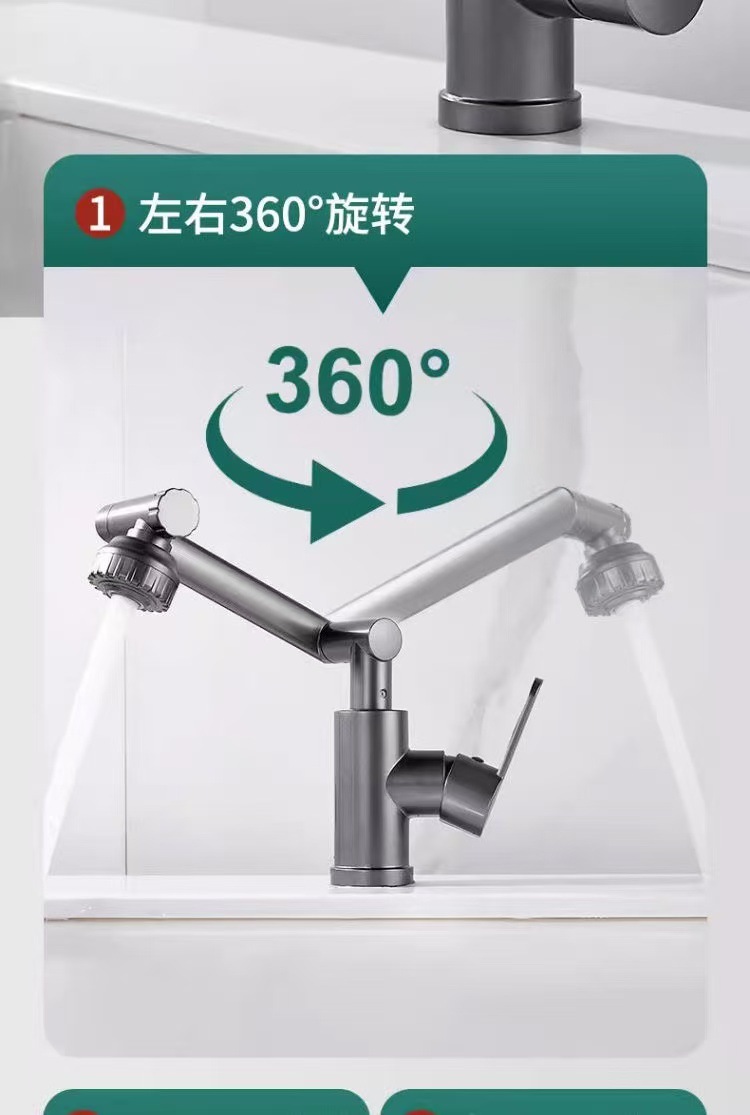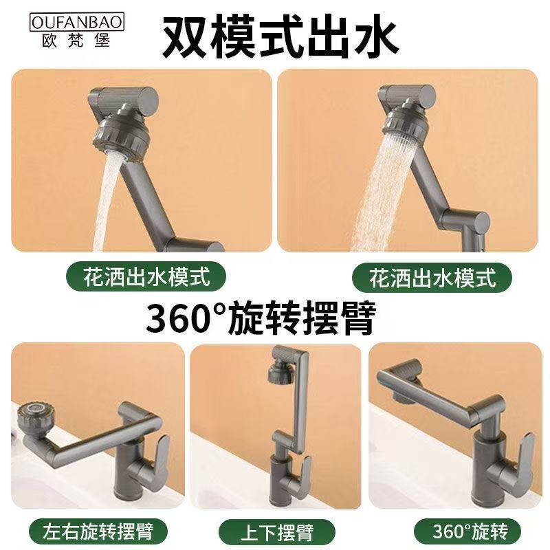 행운의 고양이 로봇 팔 다기능 회전 범용 수도꼭지 욕실 가정용 세면대 냉온수 세면대