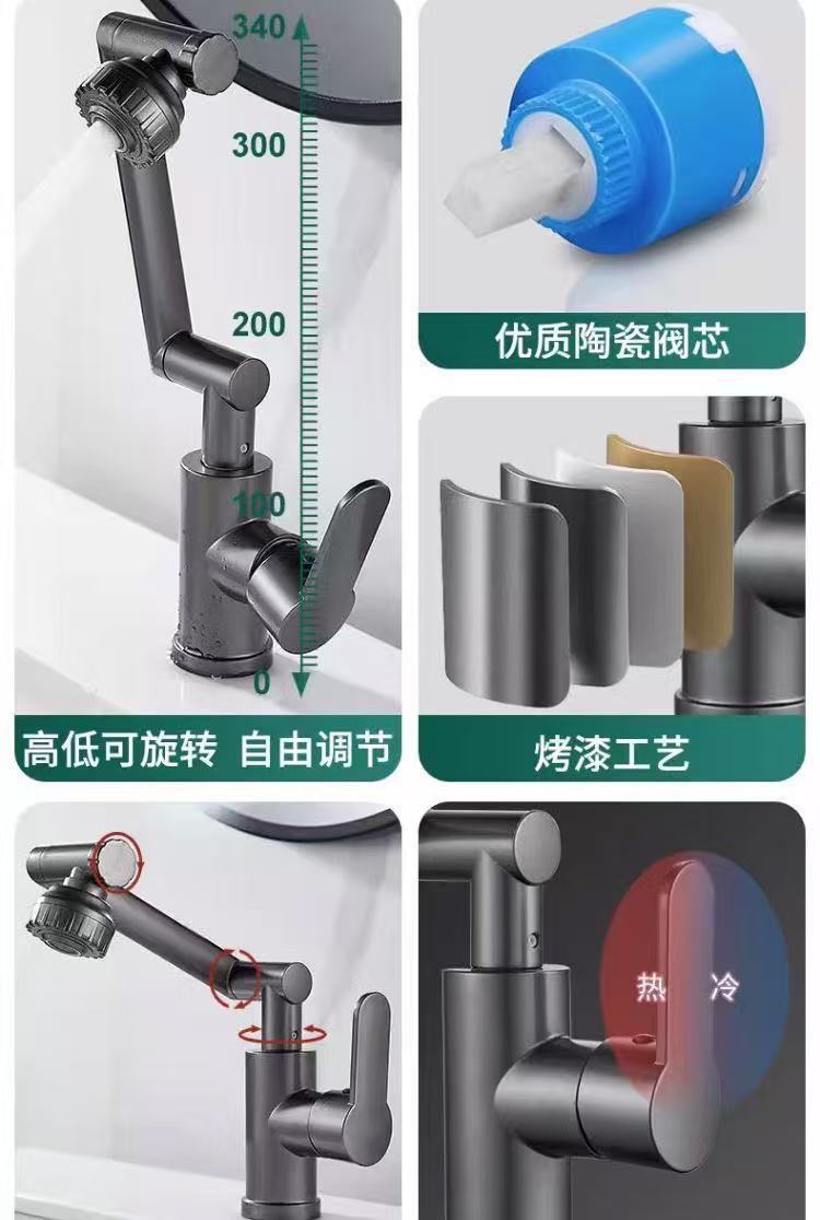행운의 고양이 로봇 팔 다기능 회전 범용 수도꼭지 욕실 가정용 세면대 냉온수 세면대스토어 가기