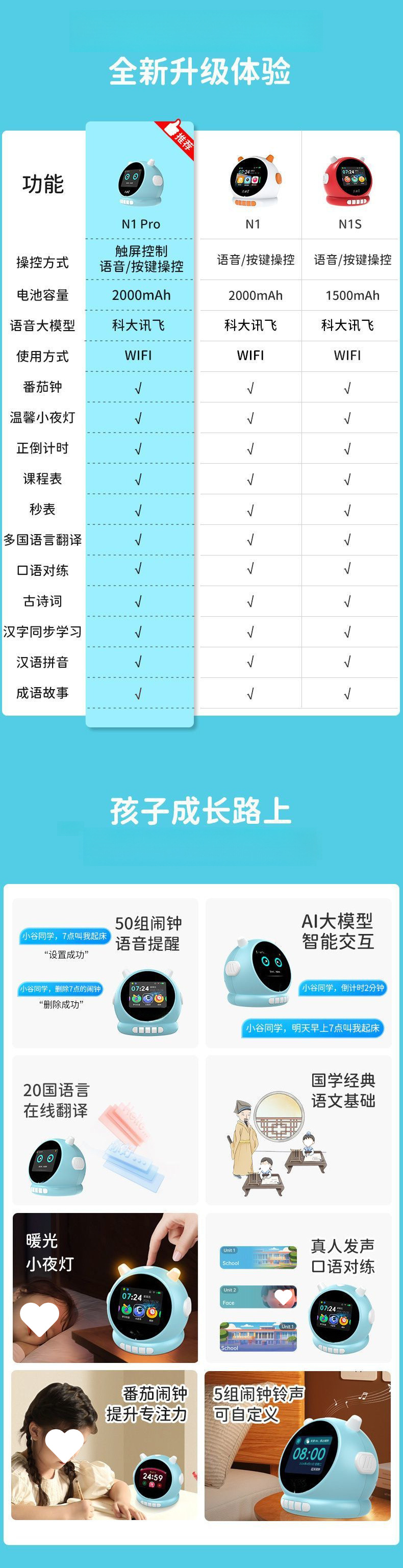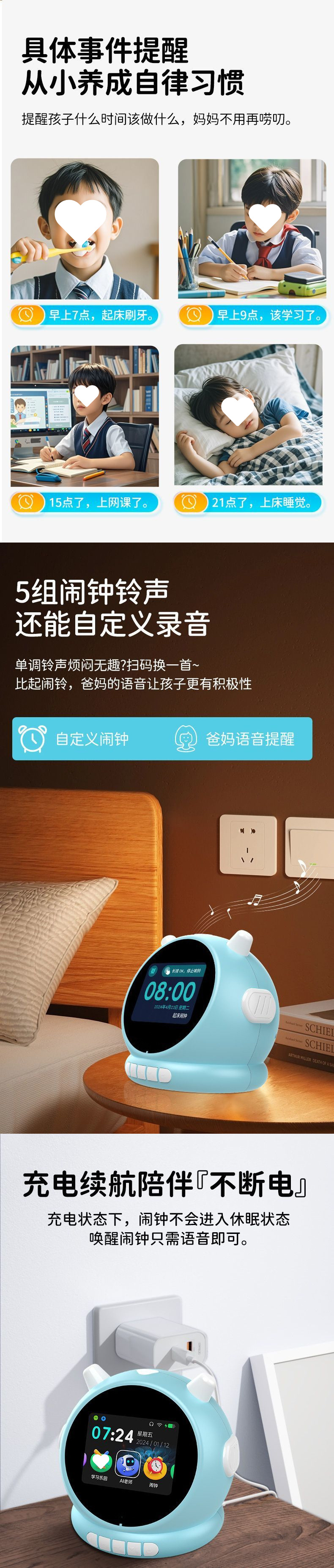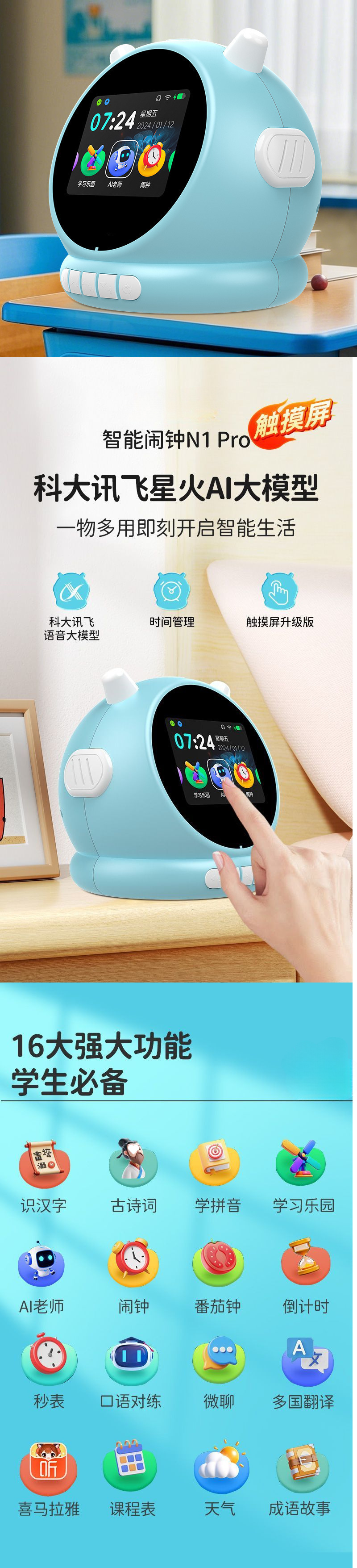 새로운 지능형 학습 기계, 다기능 터치 알람 시계, 계몽 학습, 조기 교육 시간 관리자, 학습 동반자, 간단함