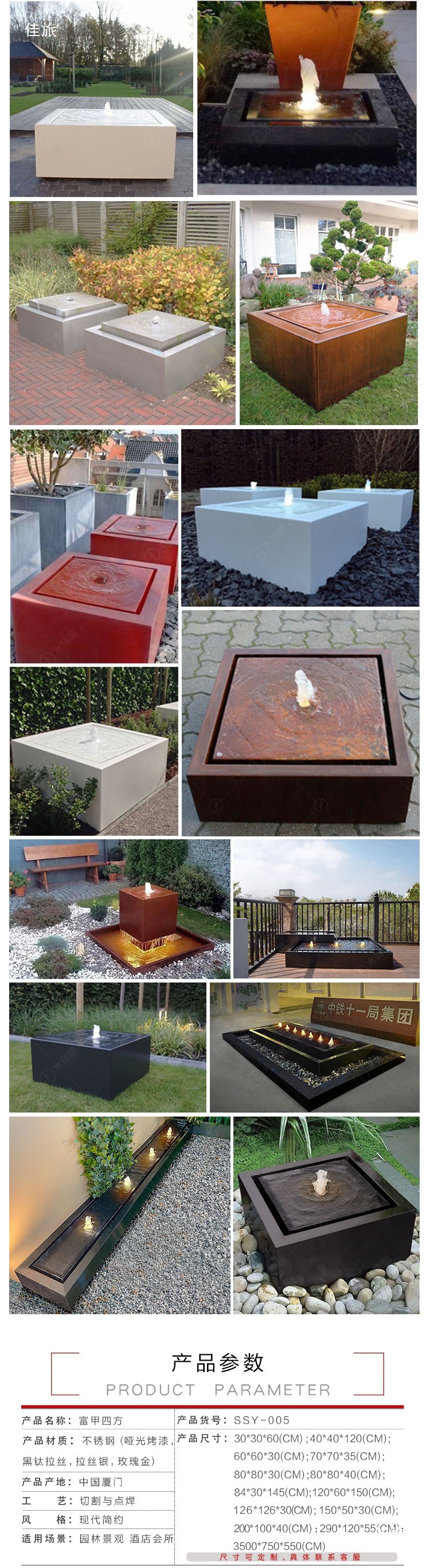 스테인리스 스틸 바닥 장식물, 물조경 분수, 순환수 시스템 장식, 실외 정원 및 실내 장식, 폭포형스토어 가기