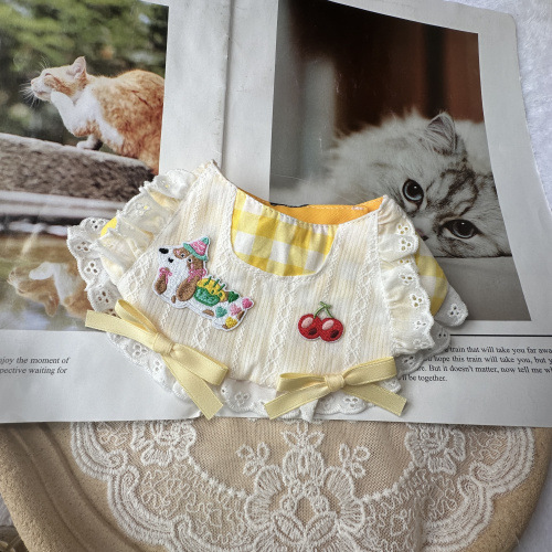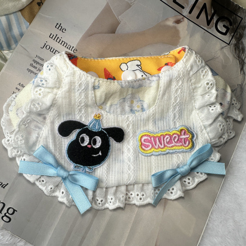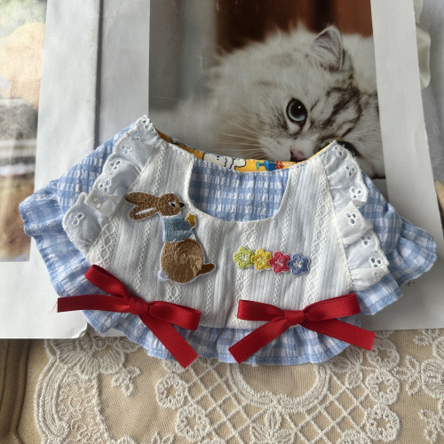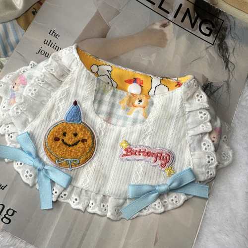 반려동물 먹는 턱받이, 리본 장식품, 턱받이, 개와 고양이 목걸이, 침 수건, 레이스 스카프