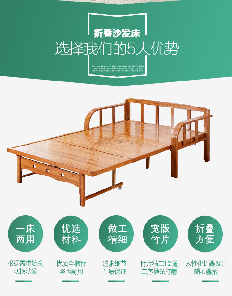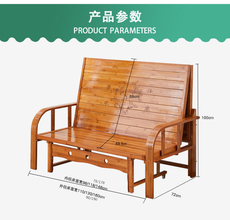 대나무 소파 베드 이중 목적 접이식 더블 점심 휴식 홈 거실 작은 사무실 싱글 레저 슬리핑 의자 침대스토어 가기