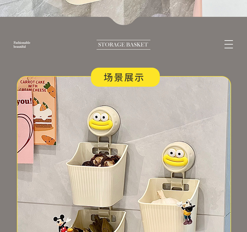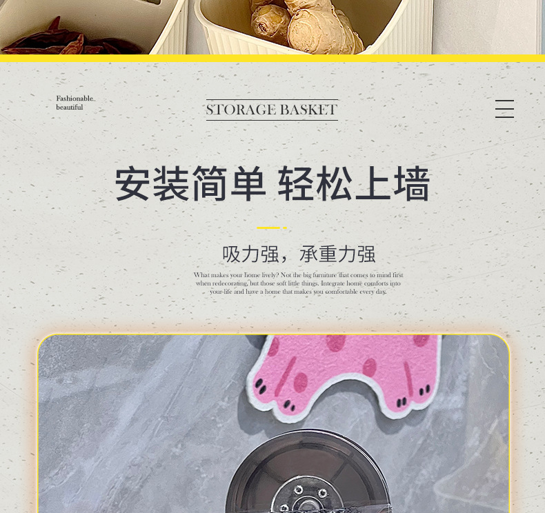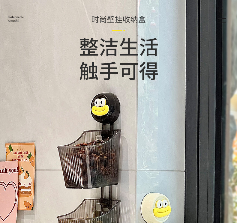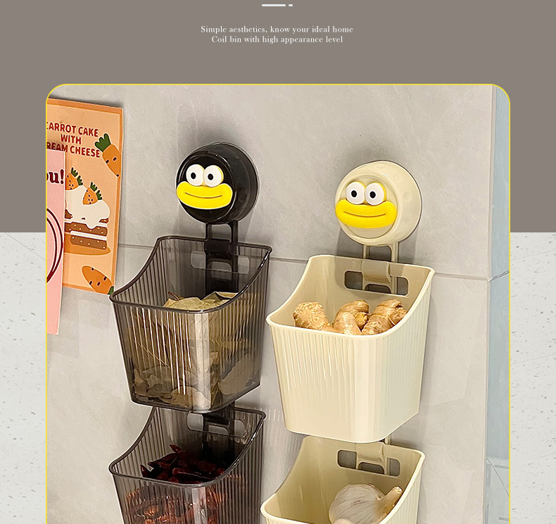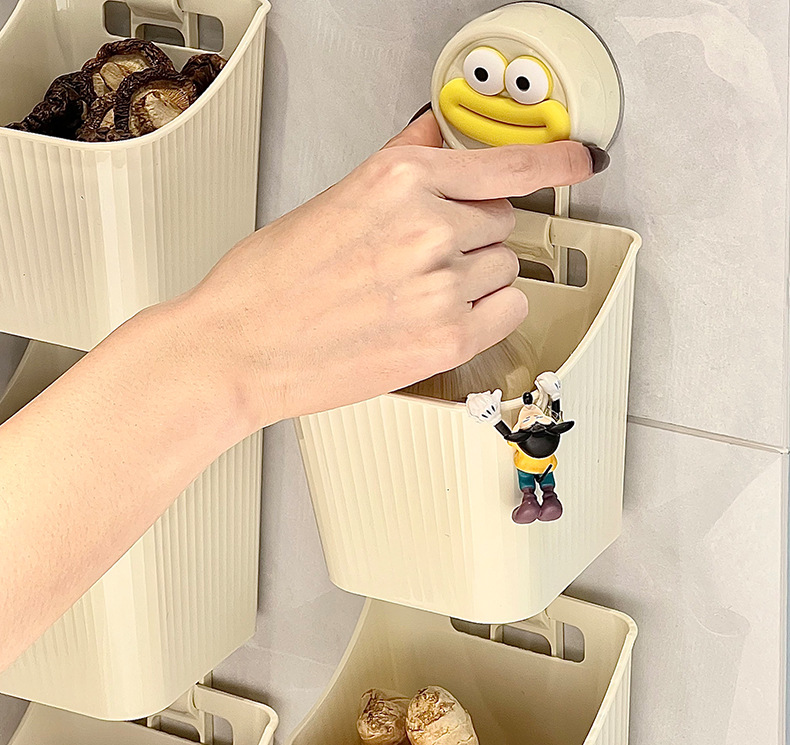 흡착컵 주방 양파, 생강, 마늘 보관함 벽걸이형 보관함 생강 마늘 스푼 보관 바구니 펀치 없는 걸이 바구니스토어 가기