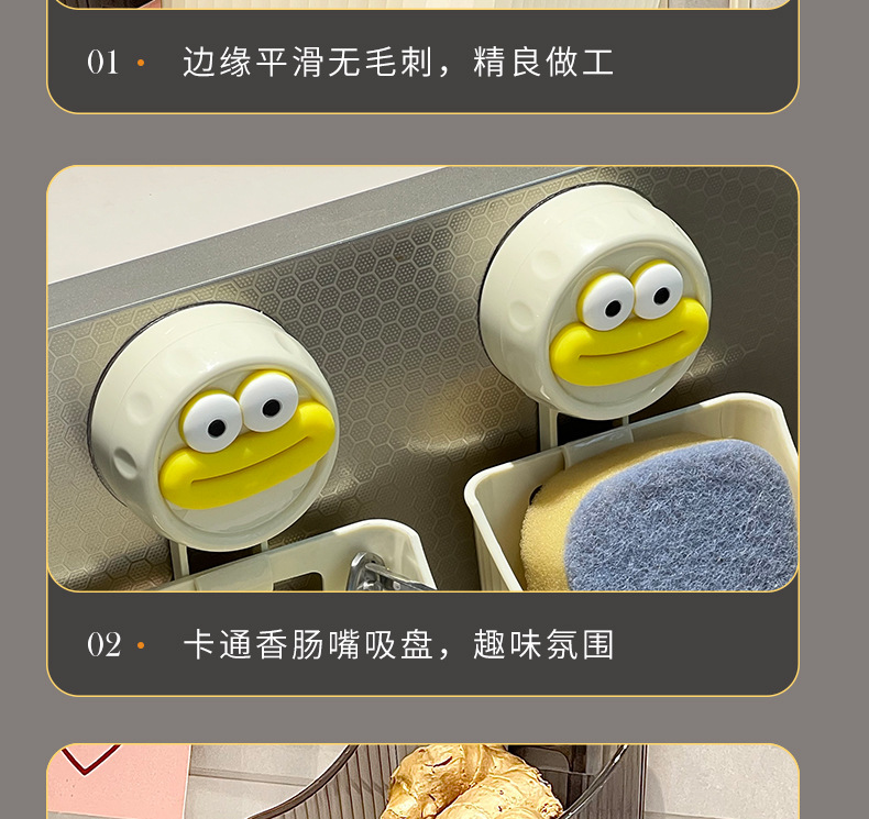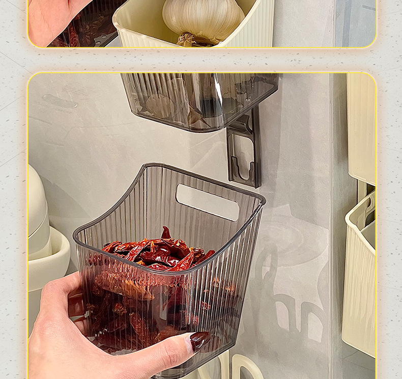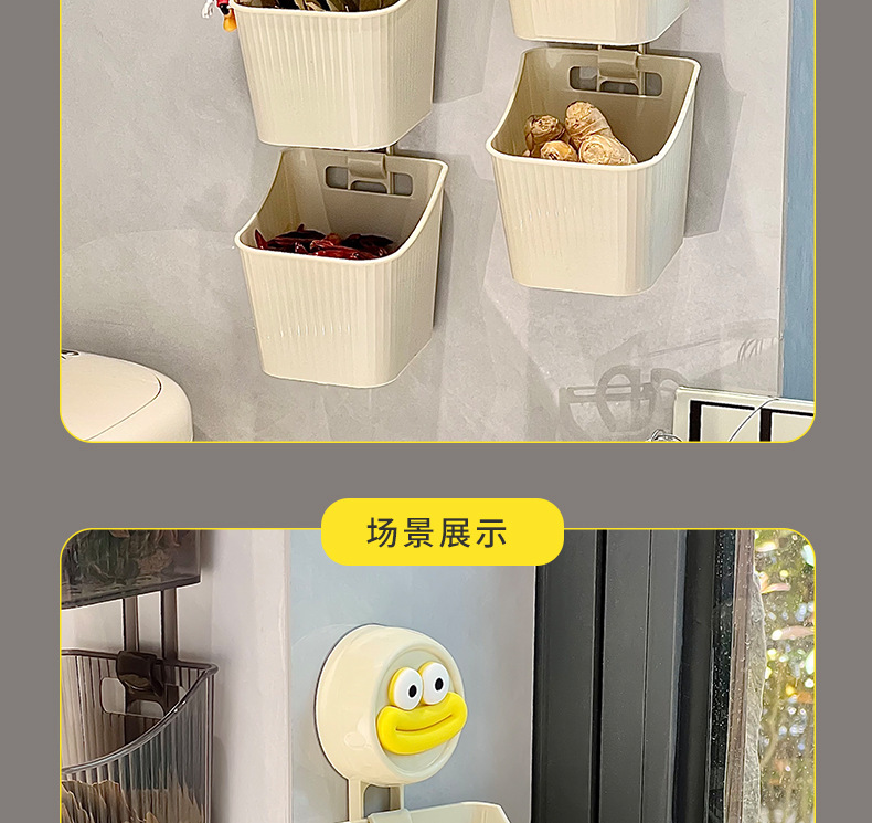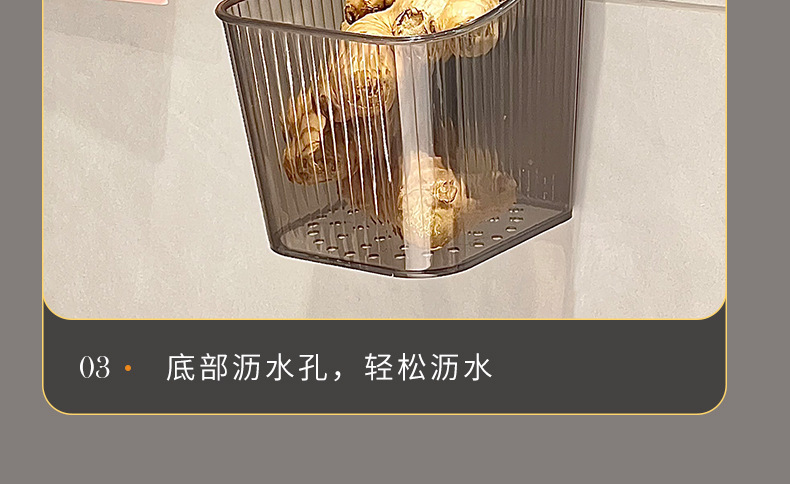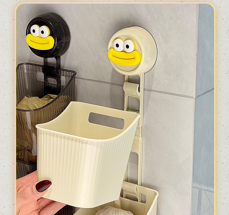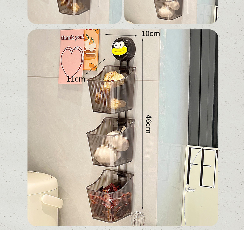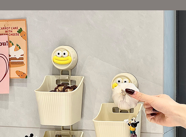 흡착컵 주방 양파, 생강, 마늘 보관함 벽걸이형 보관함 생강 마늘 스푼 보관 바구니 펀치 없는 걸이 바구니
