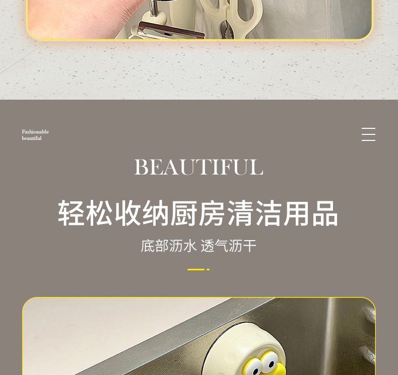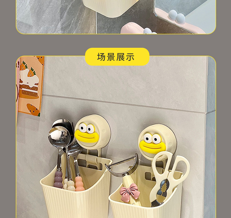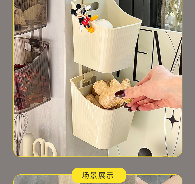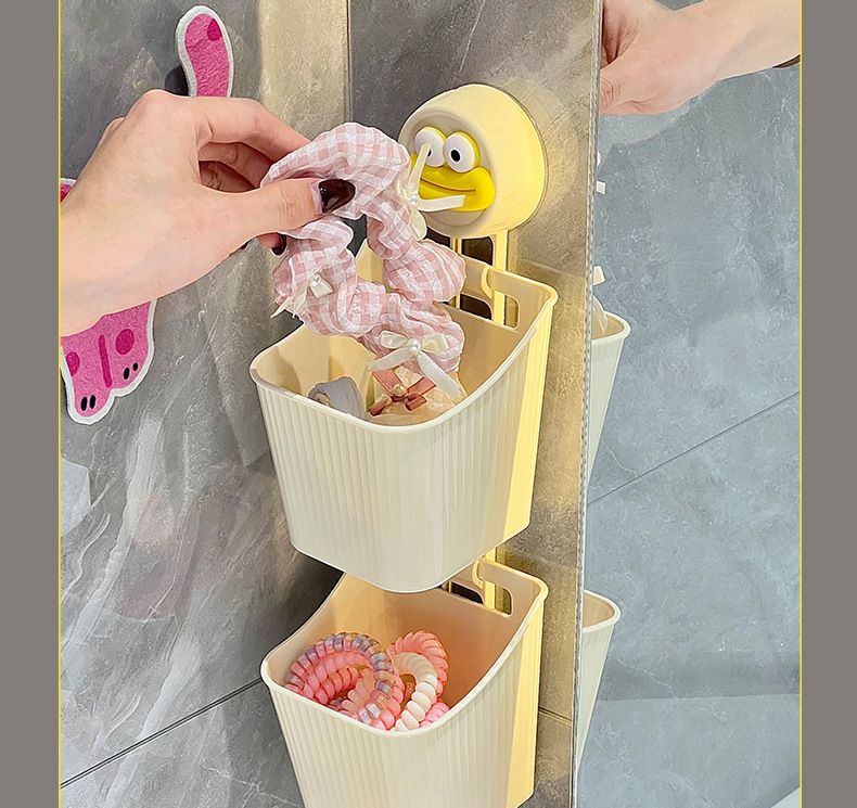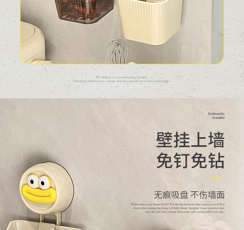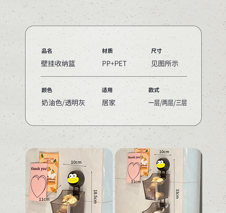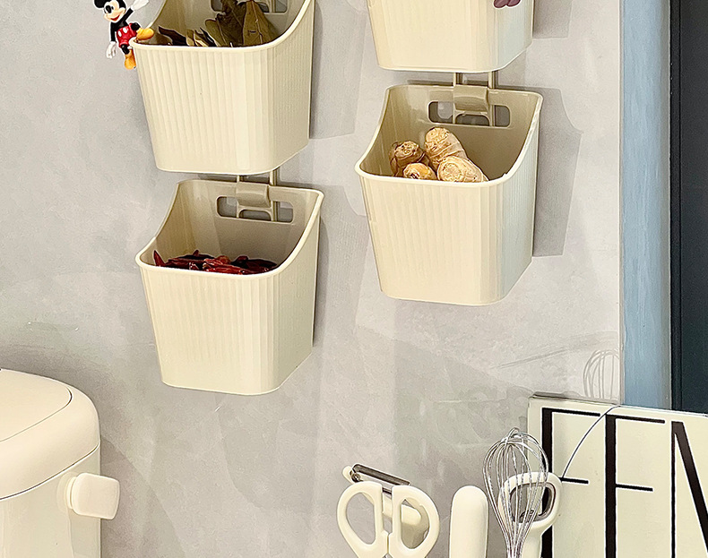 흡착컵 주방 양파, 생강, 마늘 보관함 벽걸이형 보관함 생강 마늘 스푼 보관 바구니 펀치 없는 걸이 바구니