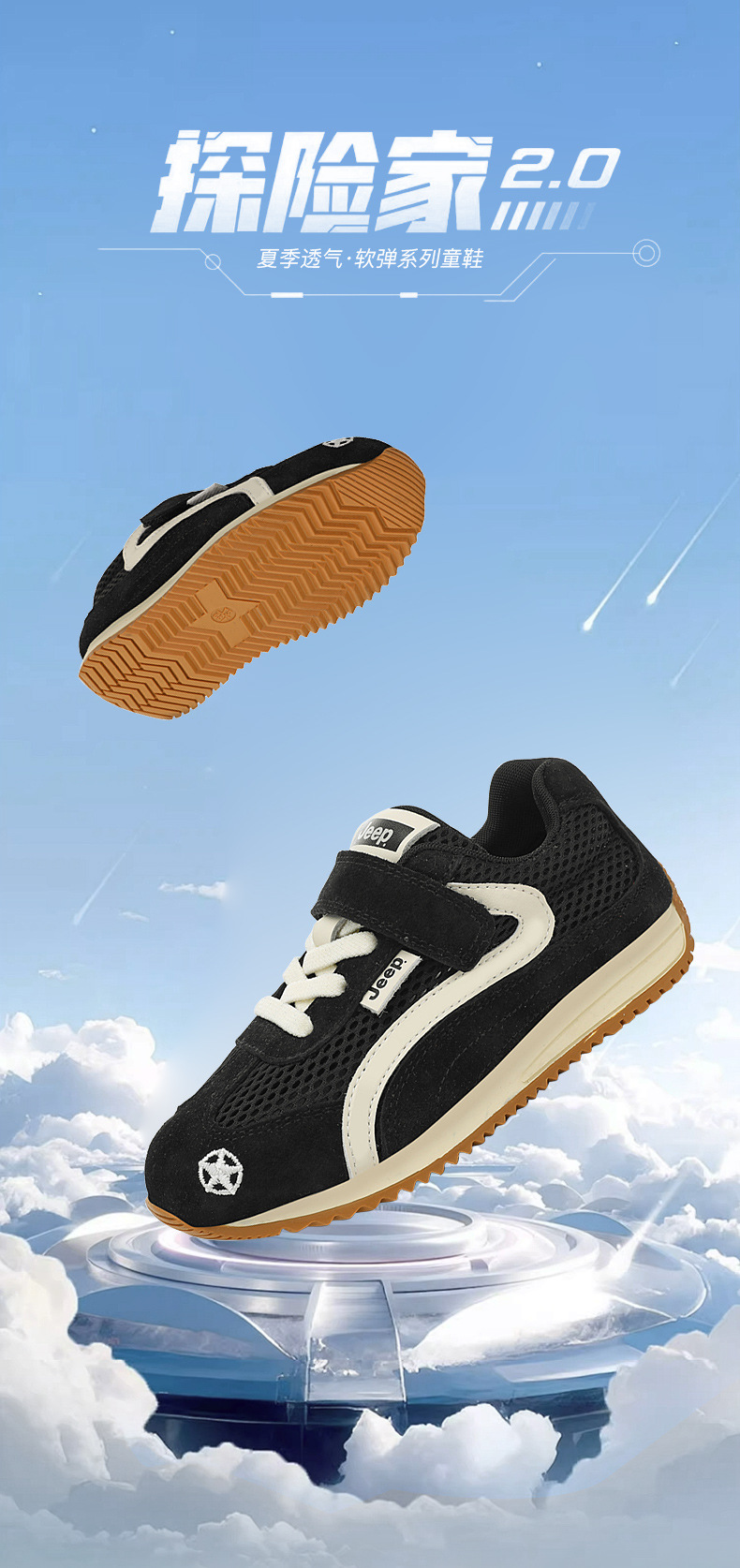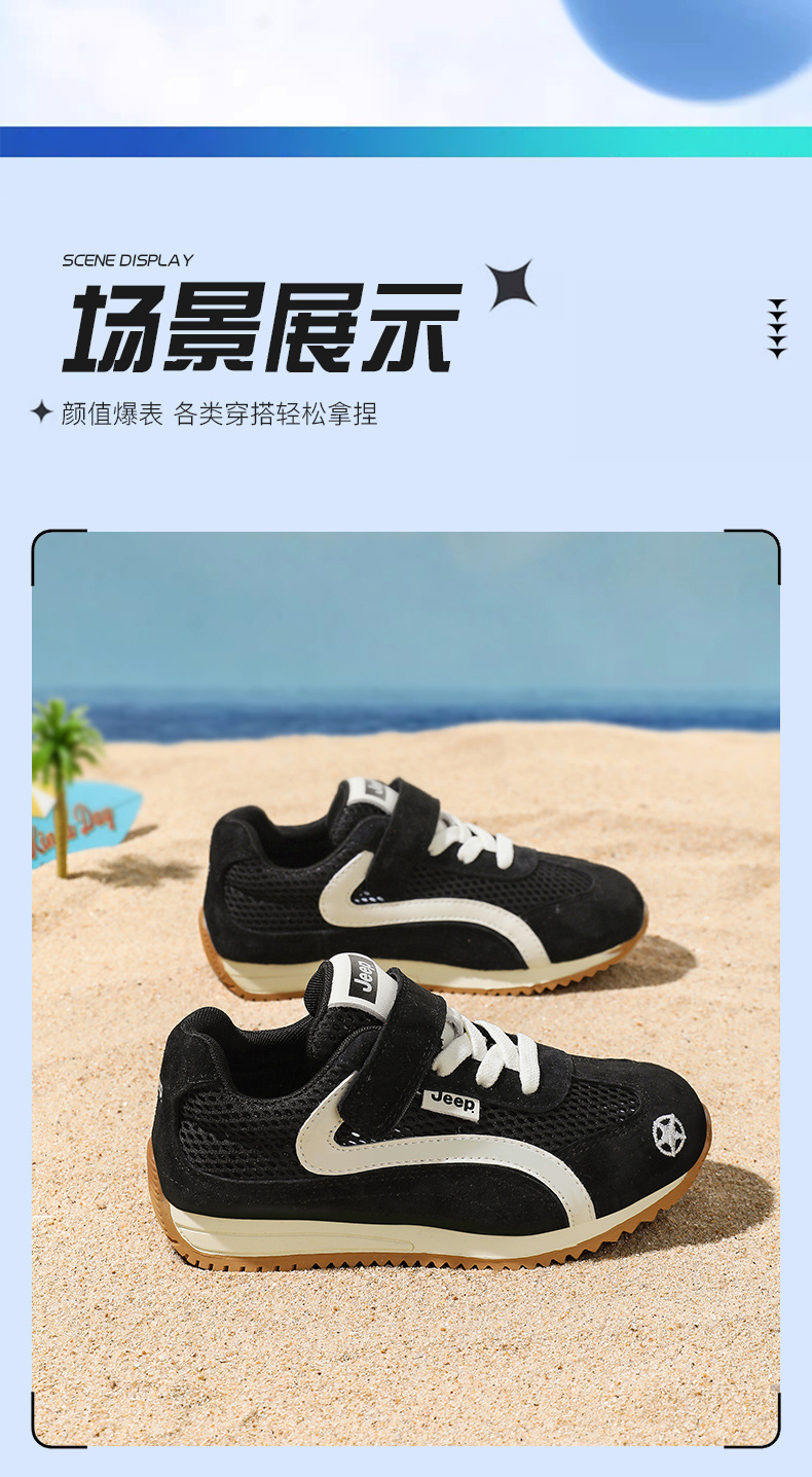 Jeep 소년 여름 메쉬 포레스트 검프 신발 부드러운 단독 러닝 소녀 메쉬 신발 2025 새로운 어린이 통기성 스포츠 신발