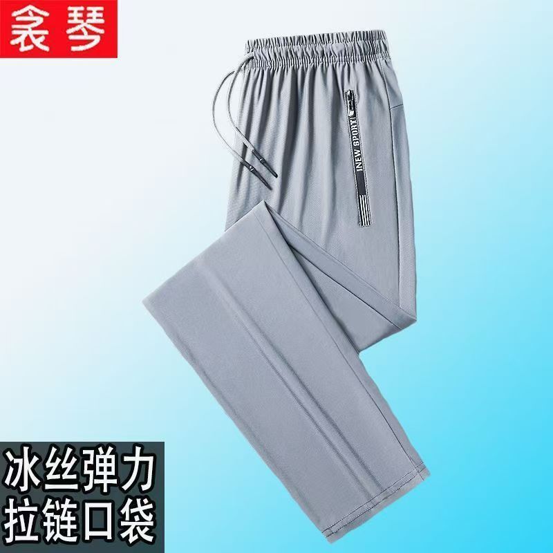 남성용 고탄성 아이스 실크 스포츠 캐주얼 바지 여름 얇은 트렌디 브랜드 스트레이트 라지 사이즈 속건성 통기성 스포츠 긴 바지스토어 가기