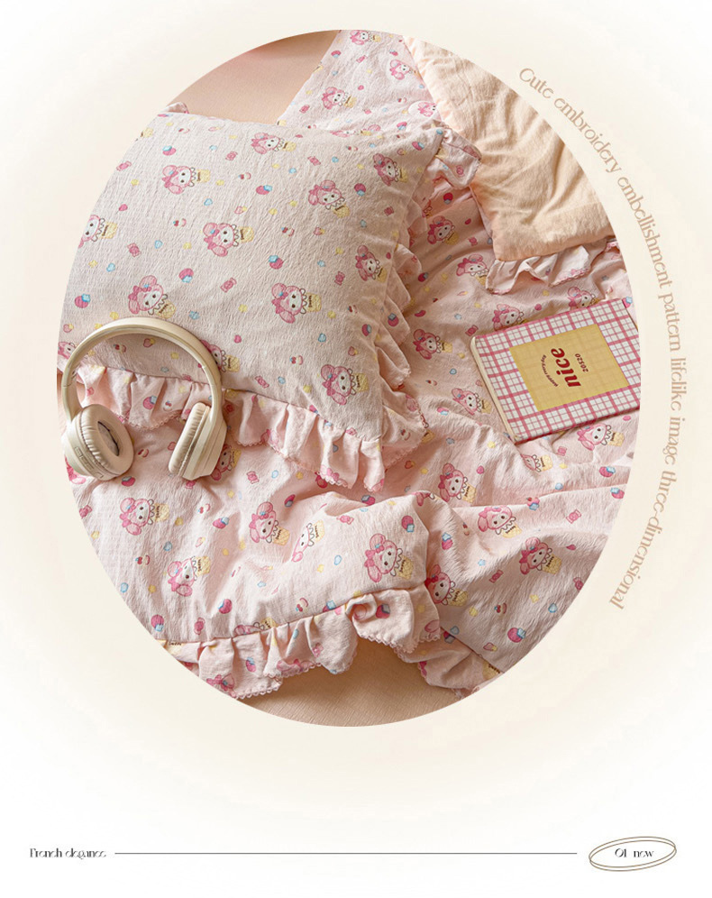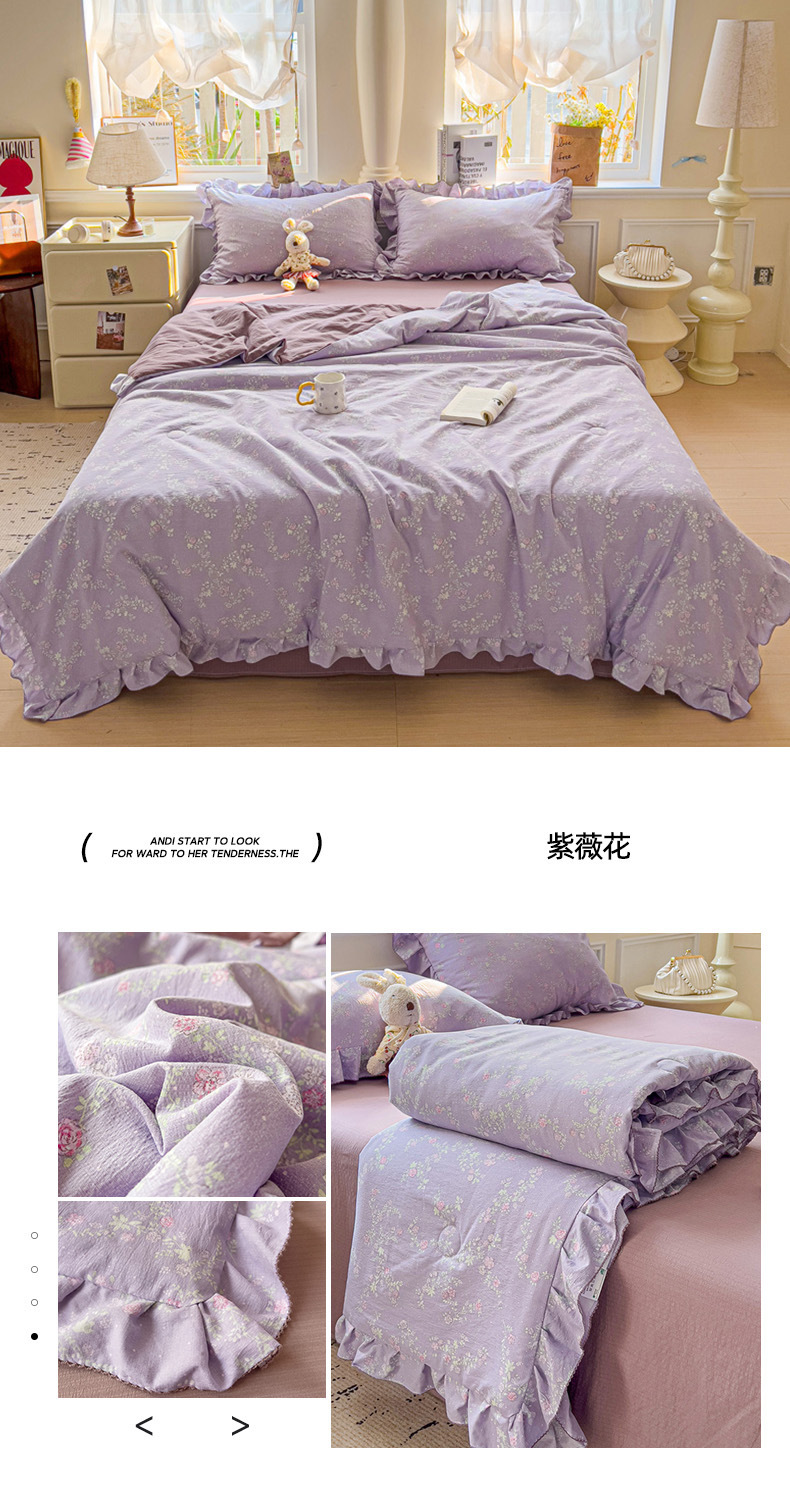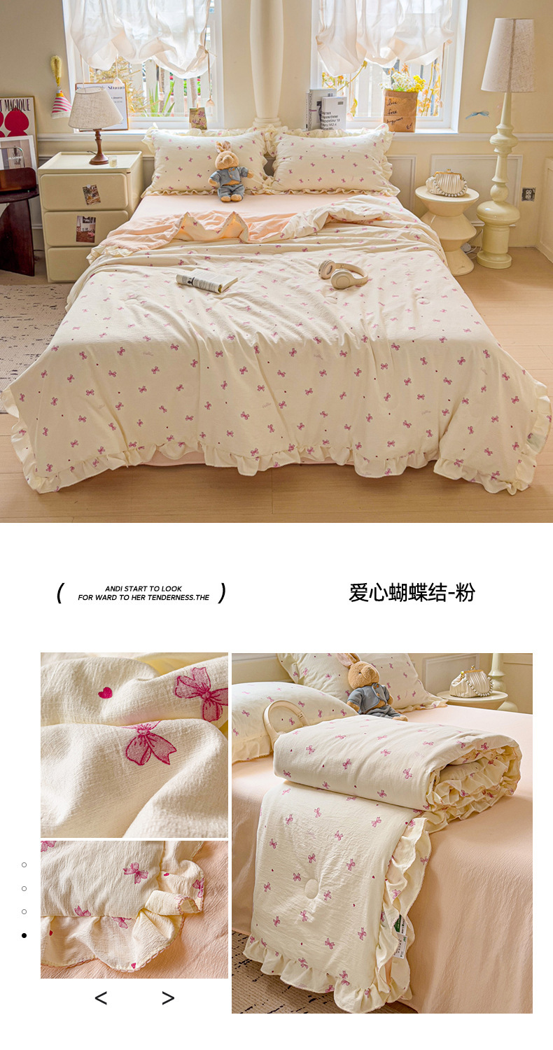 한국식 레이스 순면 여름 이불 4피스 여름 공주 스타일 작은 신선한 면 에어컨 이불 얇은 이불스토어 가기