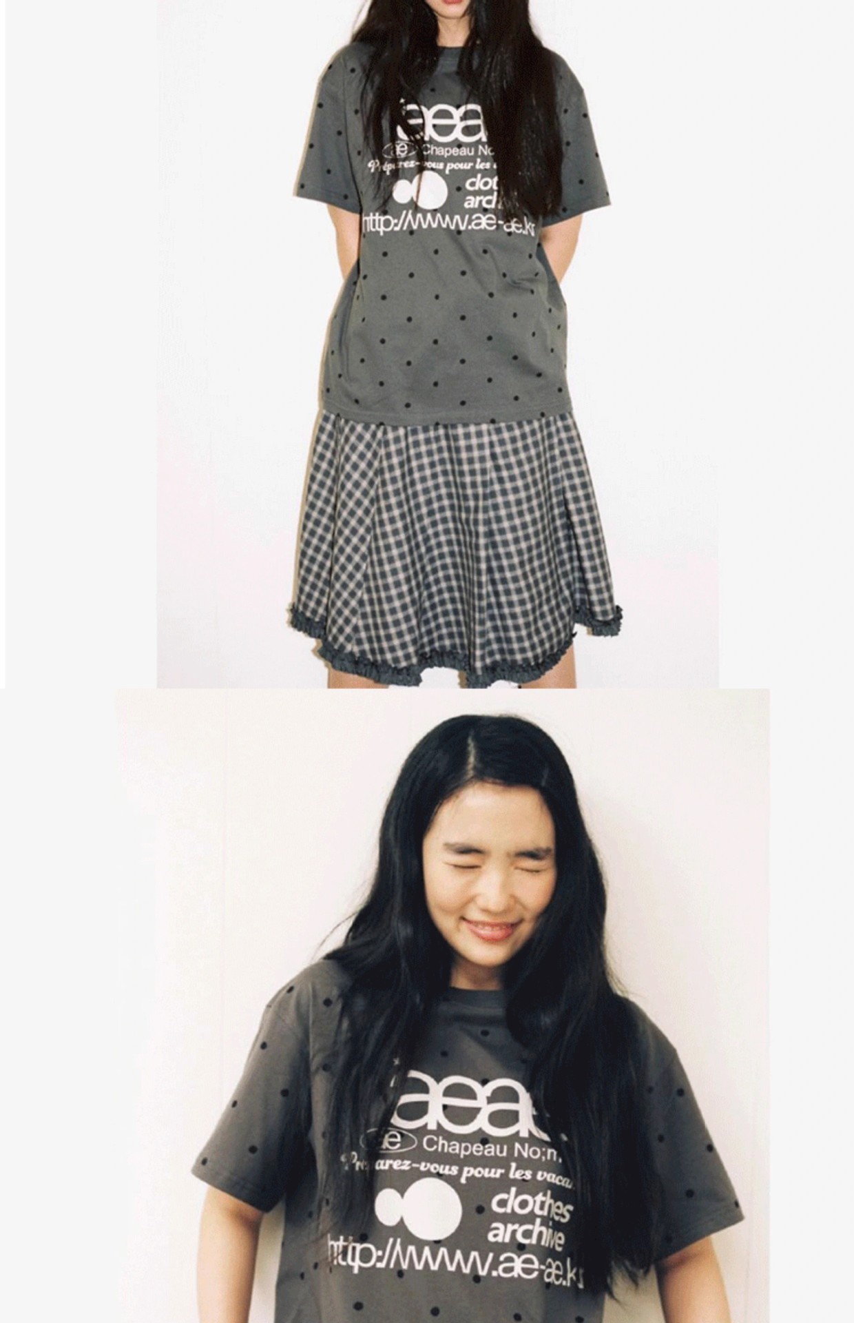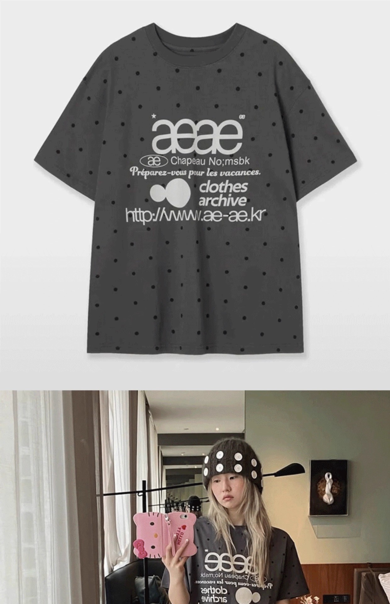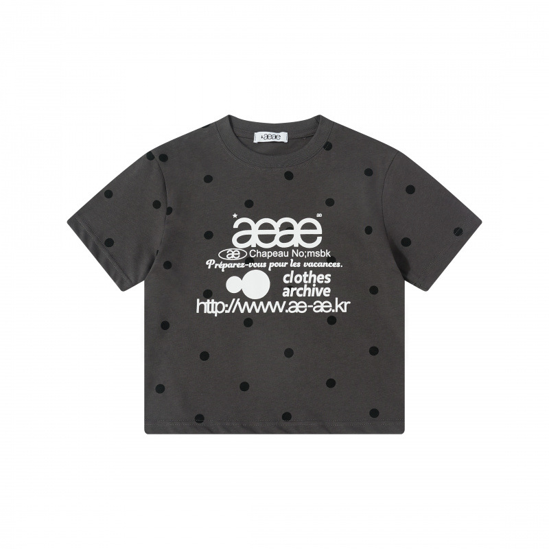 • aeae 도트무늬 반팔 차콜그레이 [숏스타일]