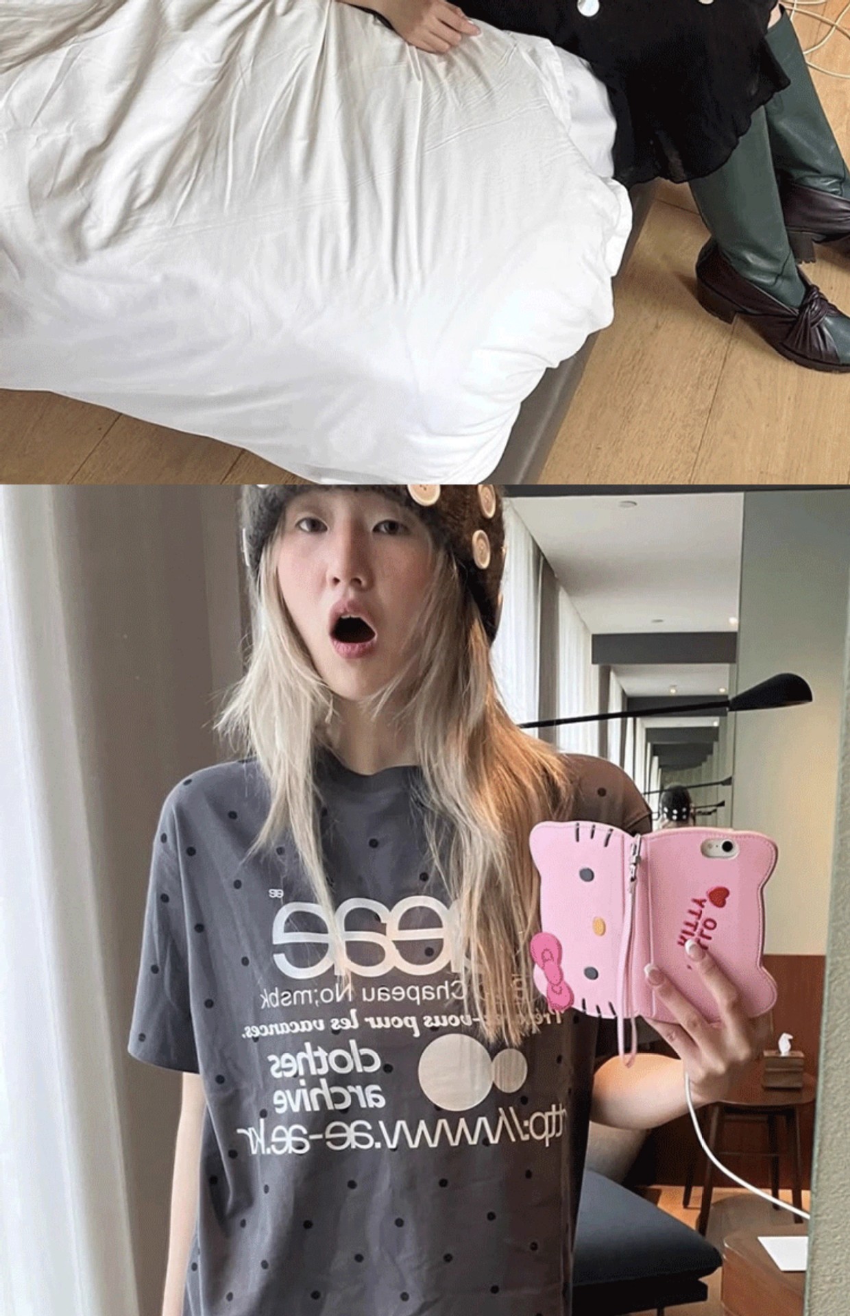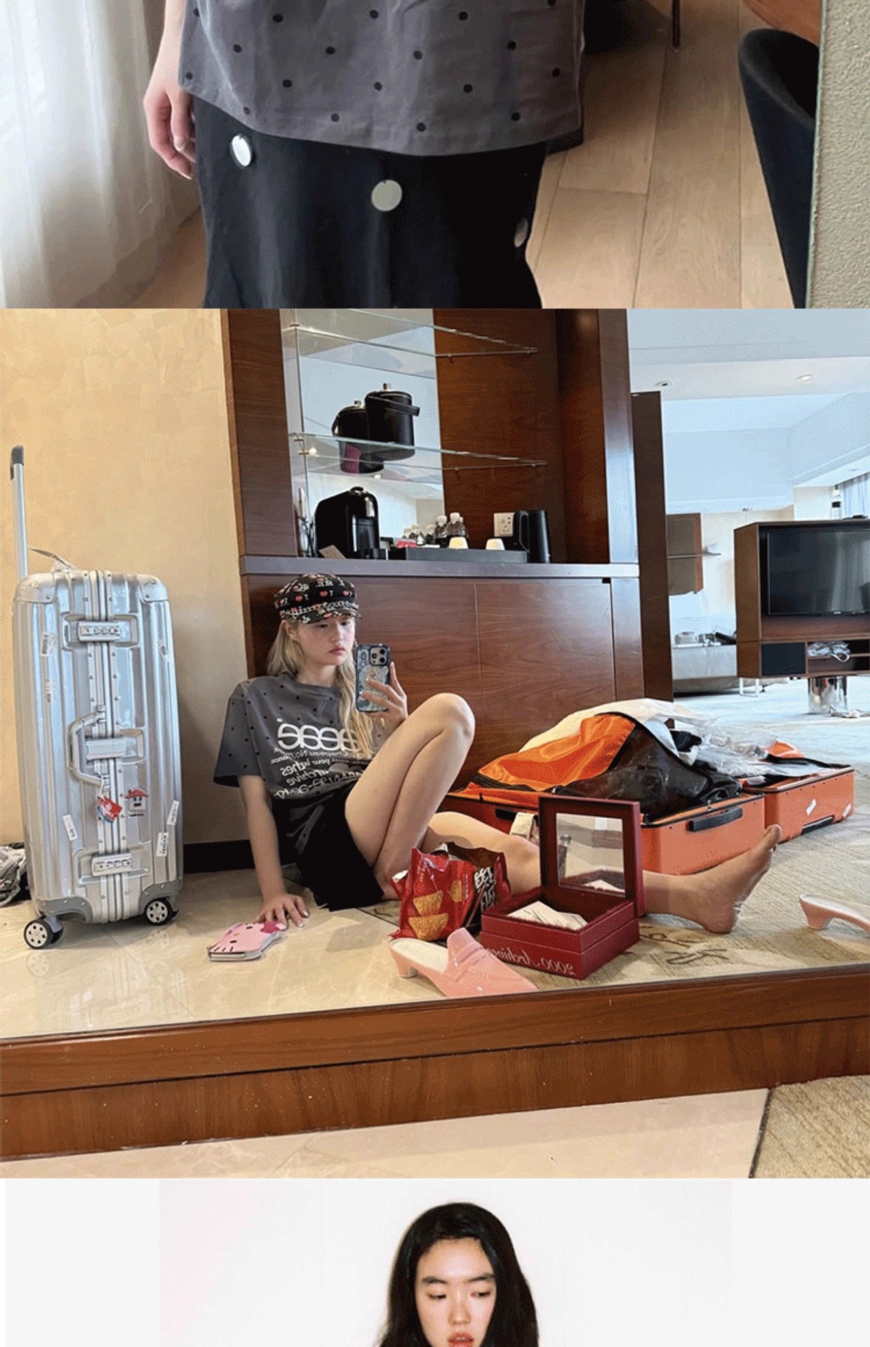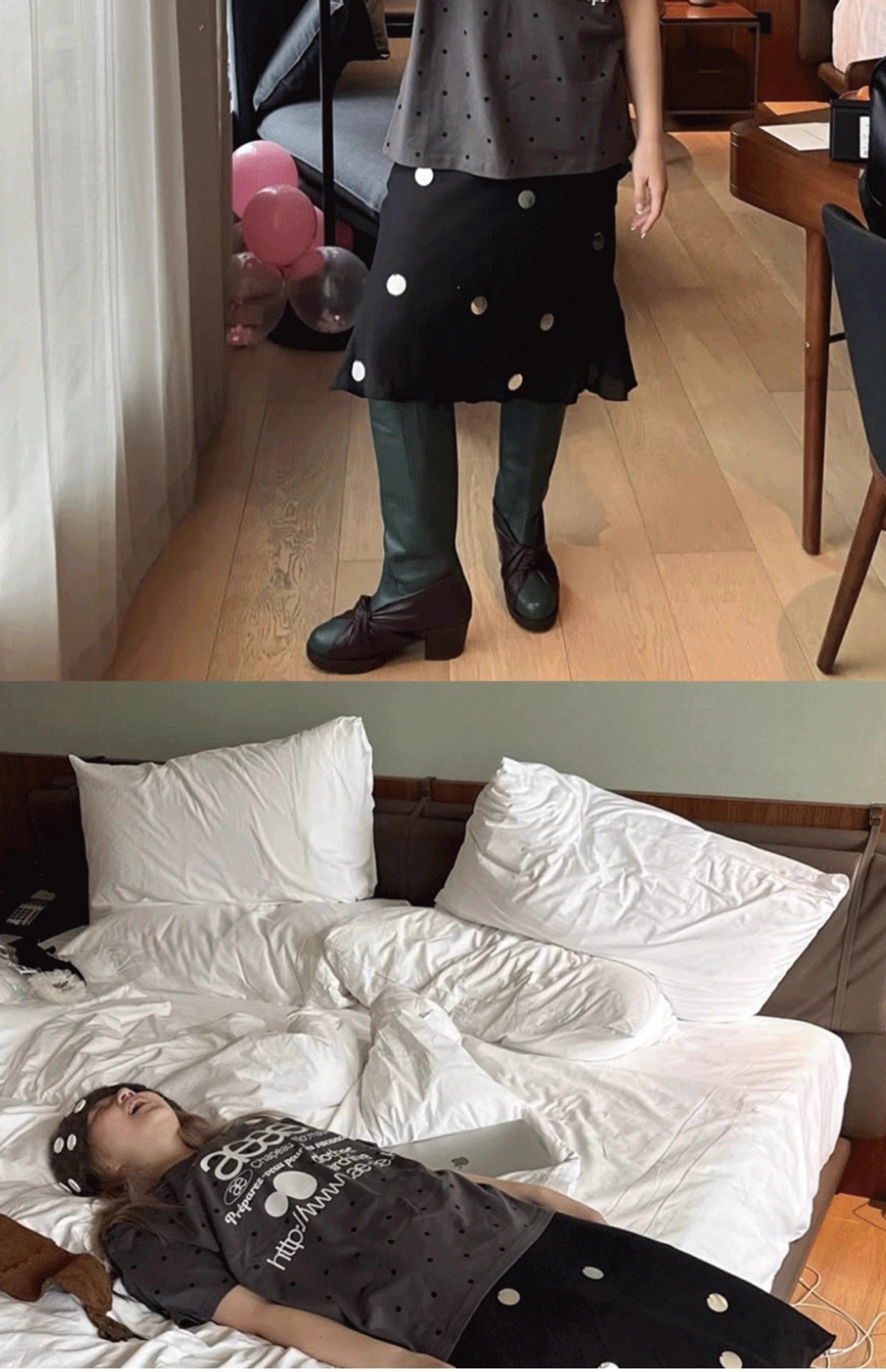 • aeae 도트무늬 반팔 차콜그레이 [숏스타일]