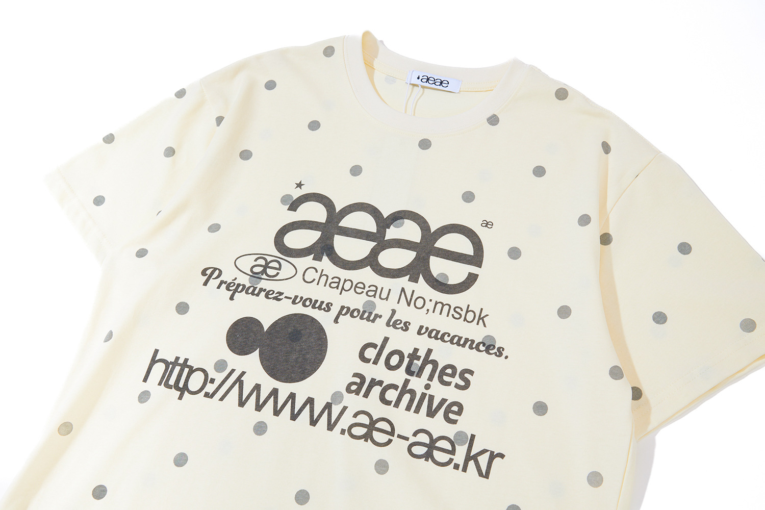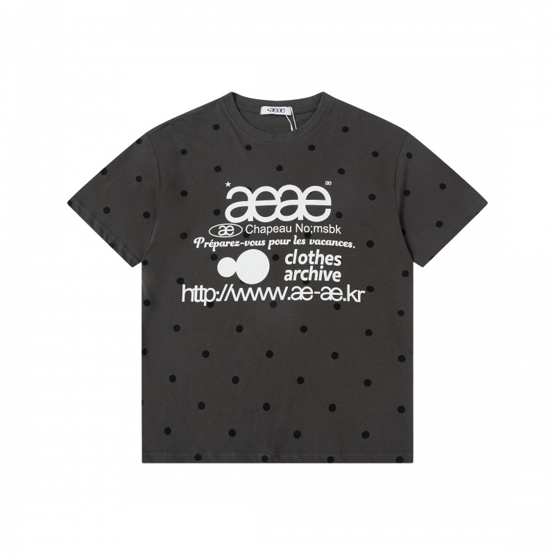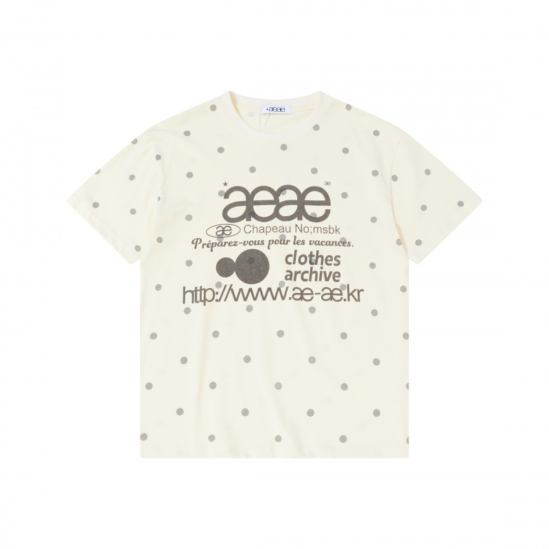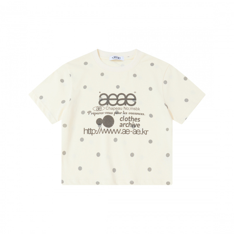 한국 aeae 폴카 도트 반팔 여성 25 년 신작 레터 프린트 루즈 티셔츠 여성 라운드 넥 슬림 쇼트 탑스토어 가기