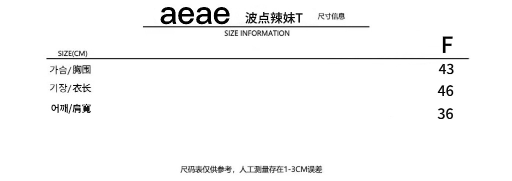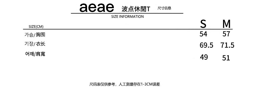 한국 aeae 폴카 도트 반팔 여성 25 년 신작 레터 프린트 루즈 티셔츠 여성 라운드 넥 슬림 쇼트 탑