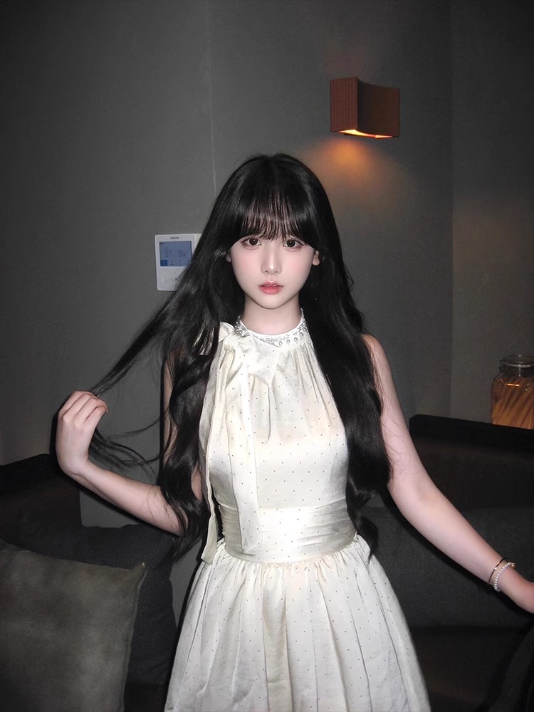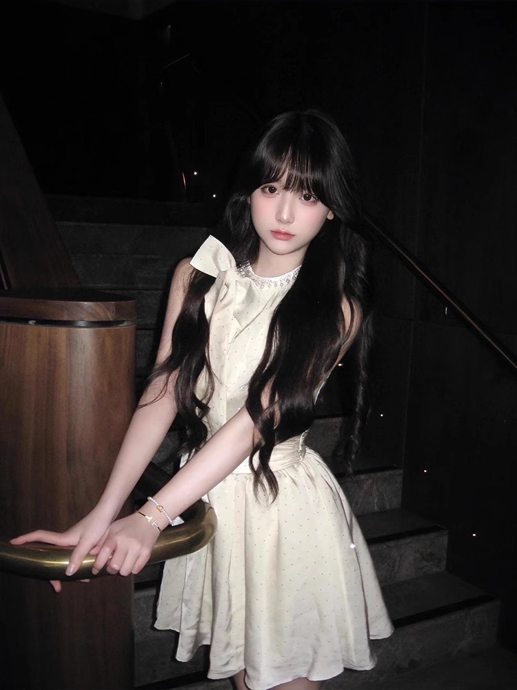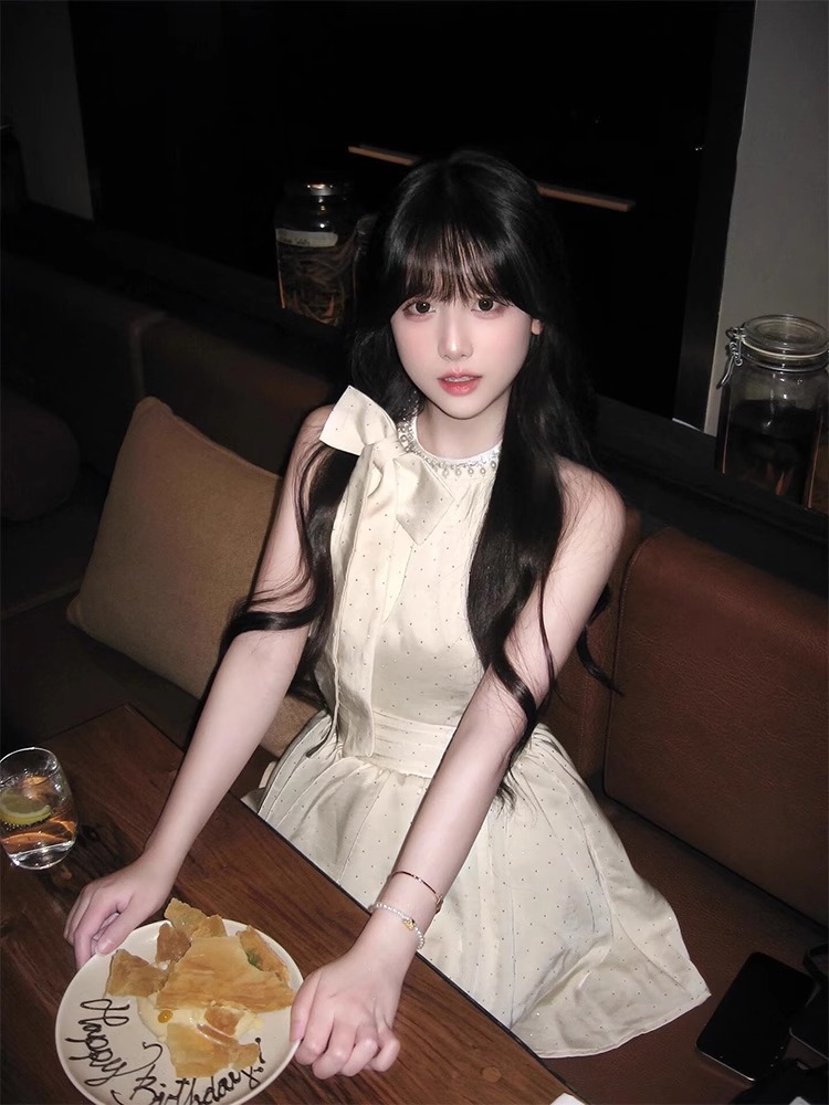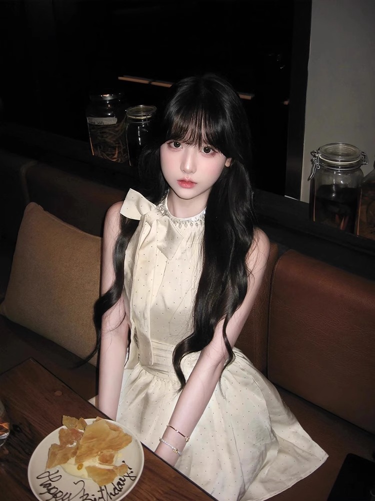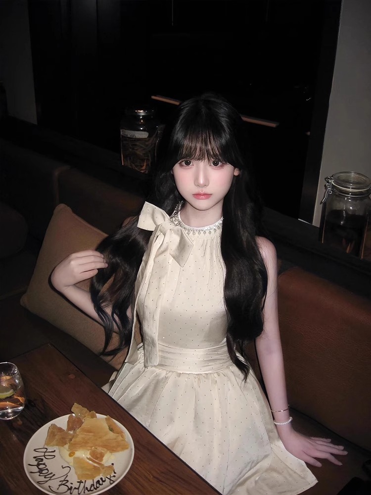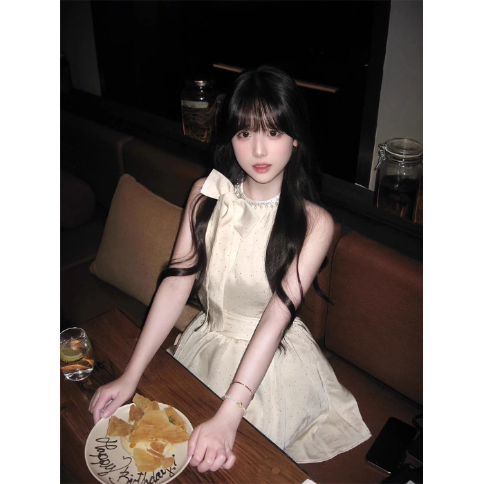 Qianjin Pure Desire 핫 다이아몬드 반짝 이는 보우 홀터넥 허리 드레스 휴가 생일 드레스 작은 공주 스커트스토어 가기