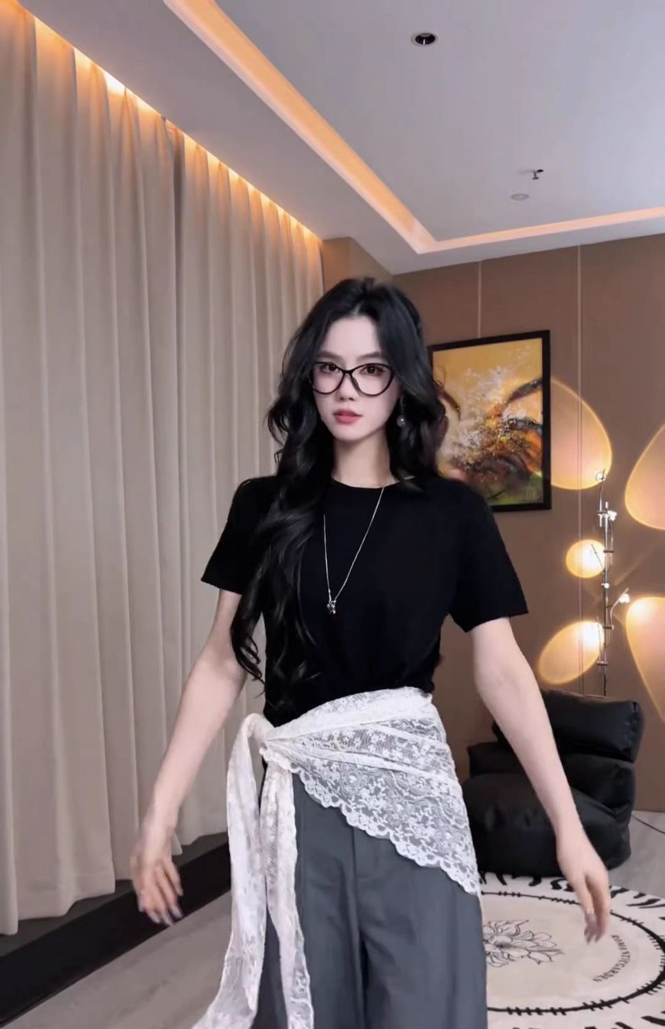 여성을 위한 스트랩 원피스 A라인 스커트 2025 신상 힙 커튼 레이스 레이어드 밑단 셔츠 기질 슬리밍 거즈 스커트스토어 가기