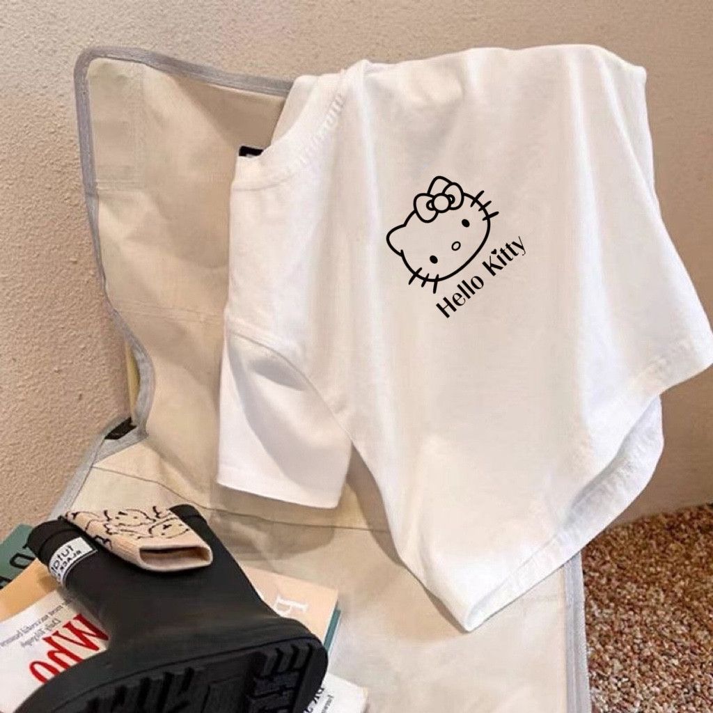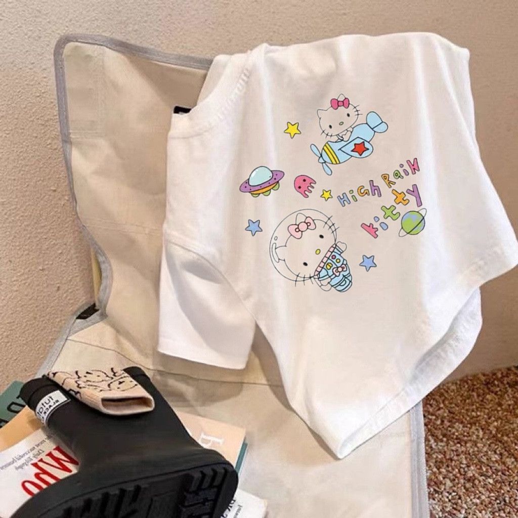 소년과 소녀를위한 새로운 여름 순면 반팔 티셔츠 탑, 한국 스타일 다용도 만화 흰색 탑, 중소형 어린이를위한스토어 가기