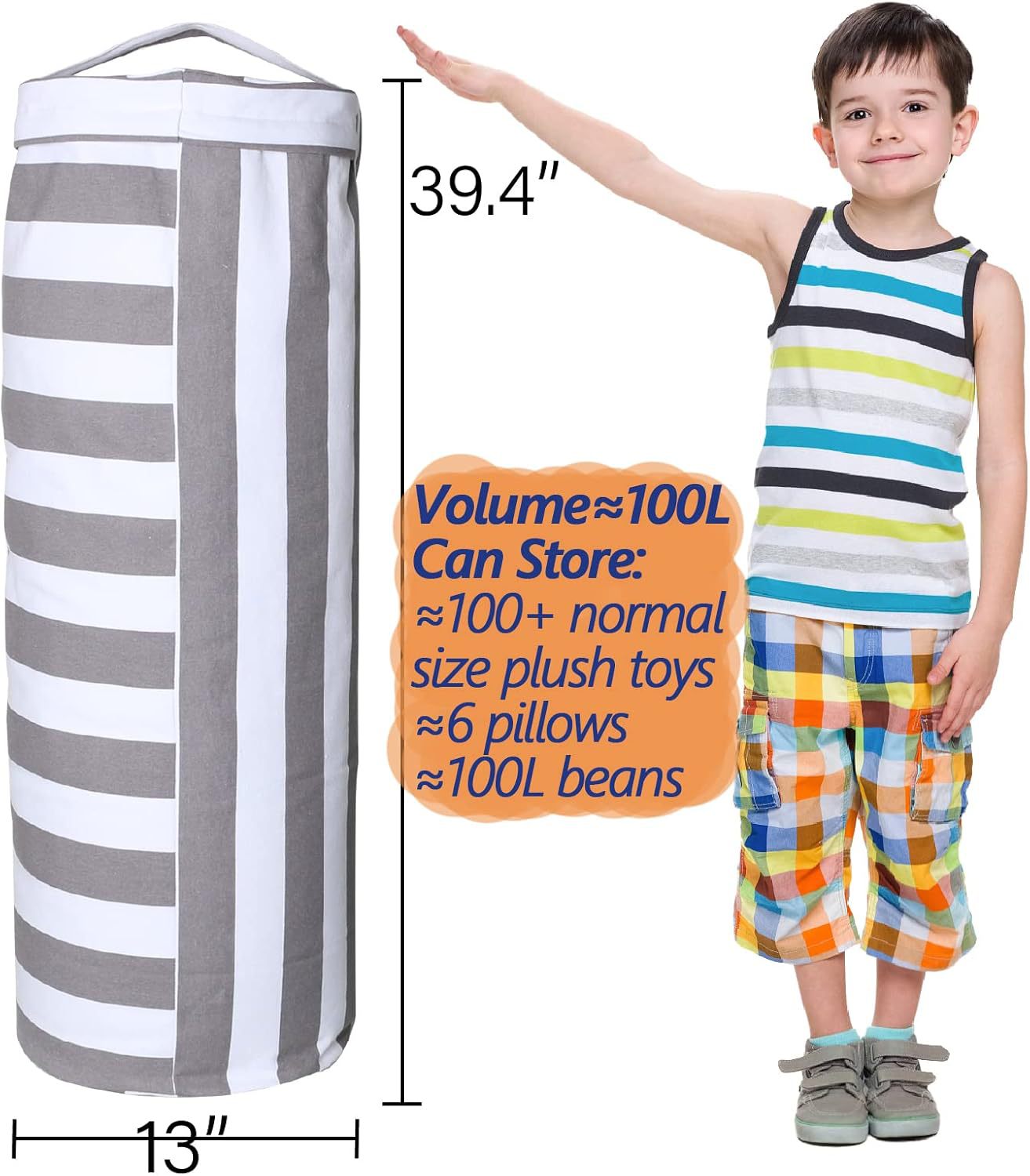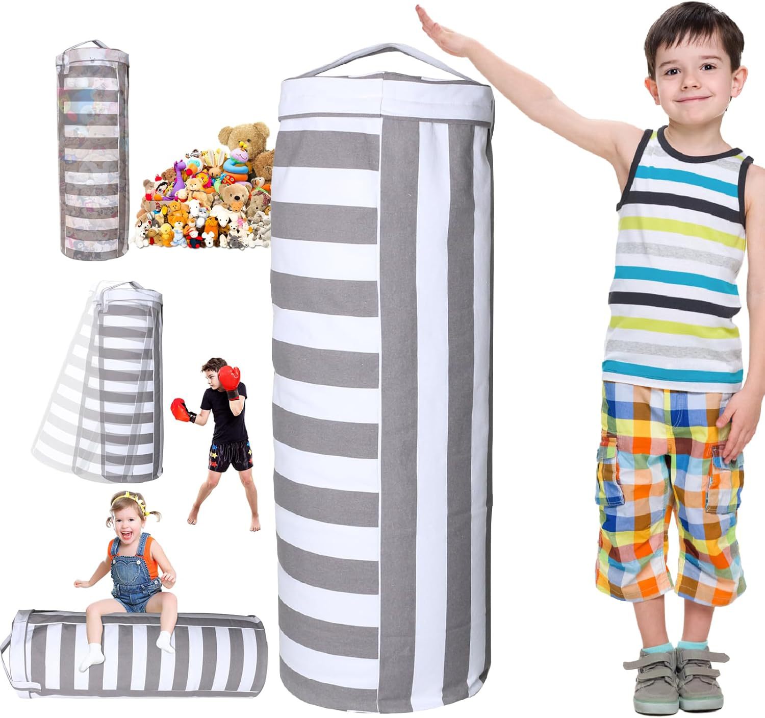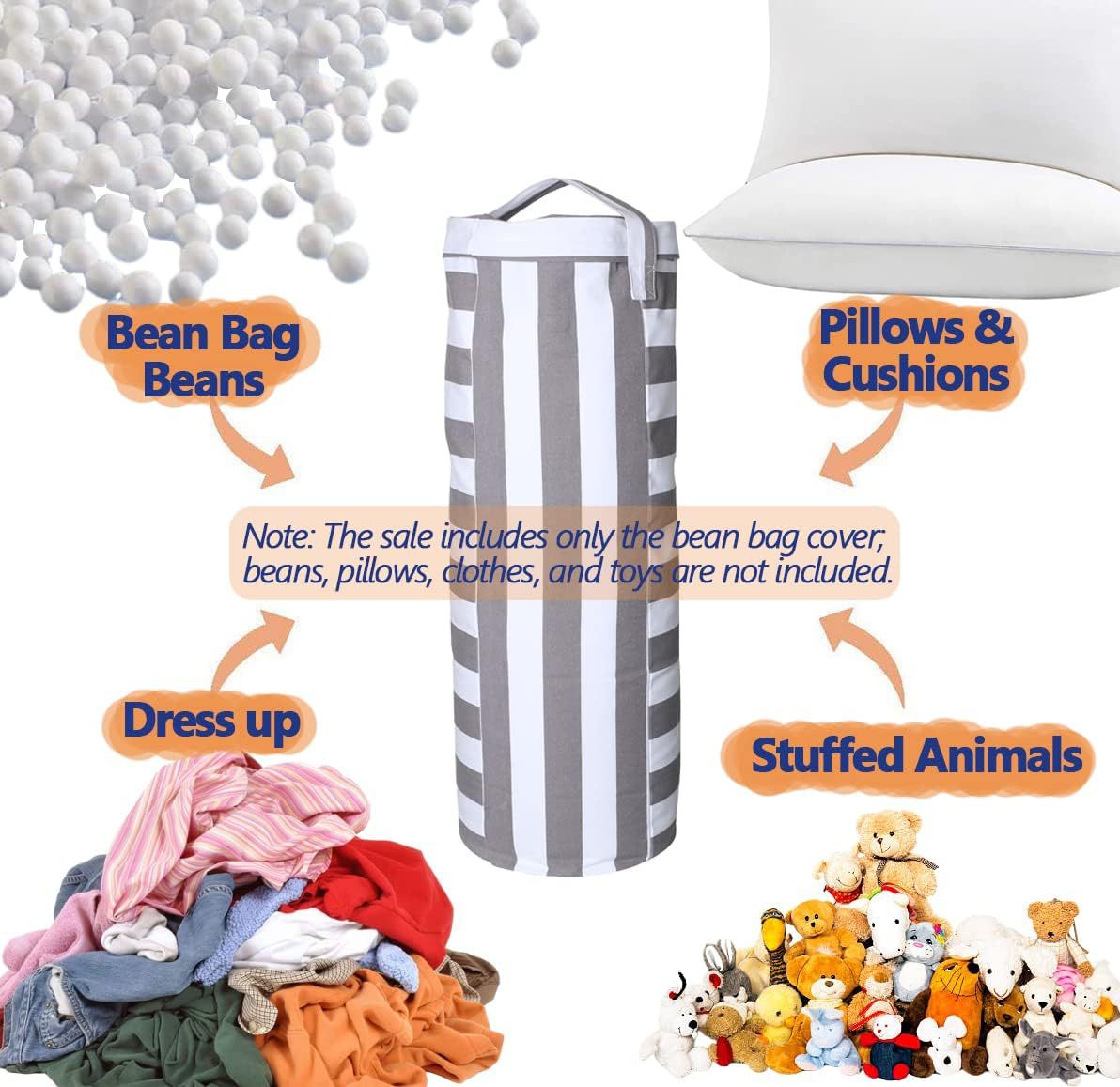 1.【存储、坐、玩耍、盒子一体化】这款家用圆筒形豆袋盖适用于填充动物的储物,具有多种存储、坐姿、玩耍和打击功能(顶部手柄用于悬挂),使其成为多功能家具,可用于多种用途。