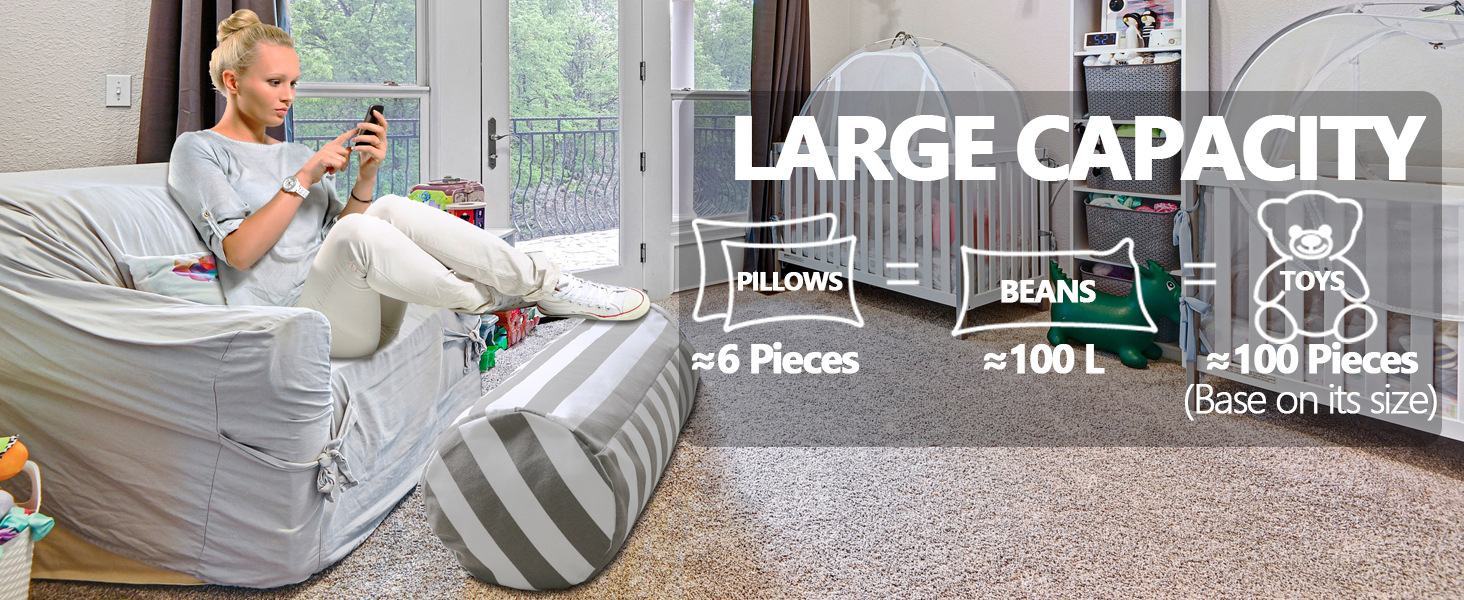 3.【收纳各种物品】这款豆袋可以装满各种柔软物品,如玩具、备用衣服、毛毯、枕头、豆袋豆或其他任何您想存放的物品!