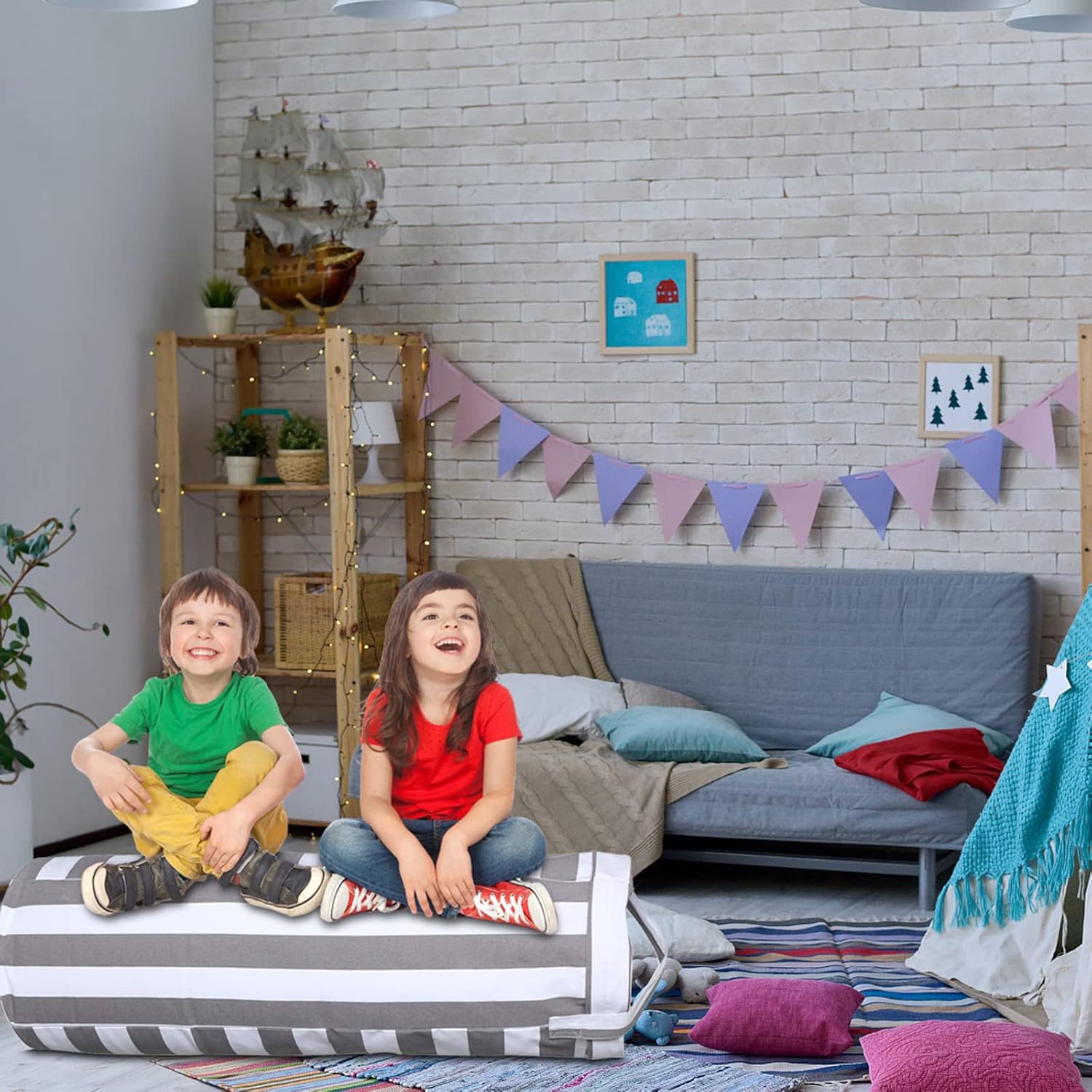 5.【节省空间的设计】这款豆袋盖非常适合狭小空间,因为它提供了一个功能性的存储解决方案,同时占用最小的地板空间。 这是让您的孩子的房间整洁有序又不失风格和舒适性的绝佳方式。