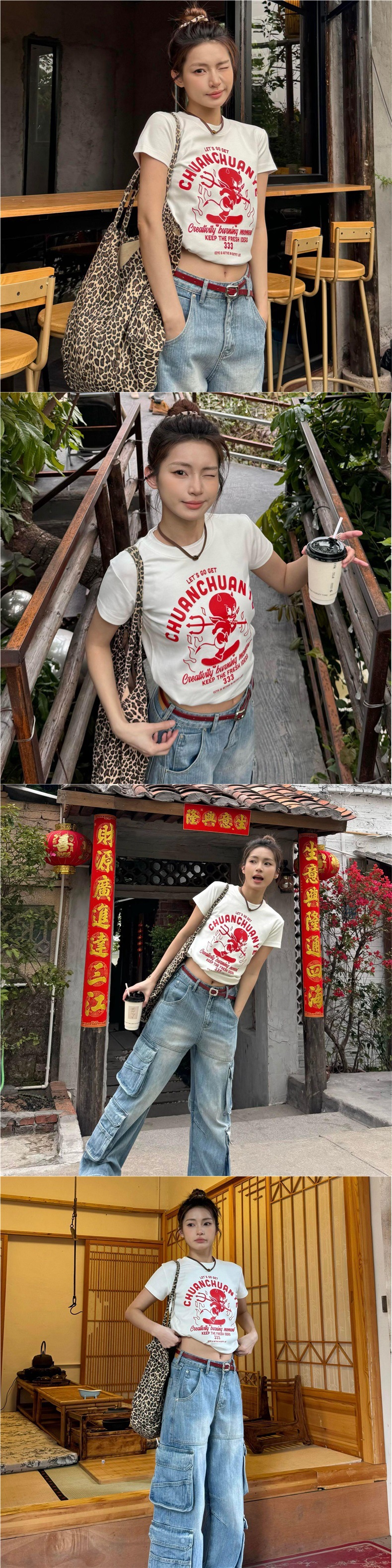 코밍 코튼 인 트렌디 스트레치 스타일 바닥 셔츠 여름 반팔 티셔츠 여성용 레드 프린트 탑 슬리밍스토어 가기