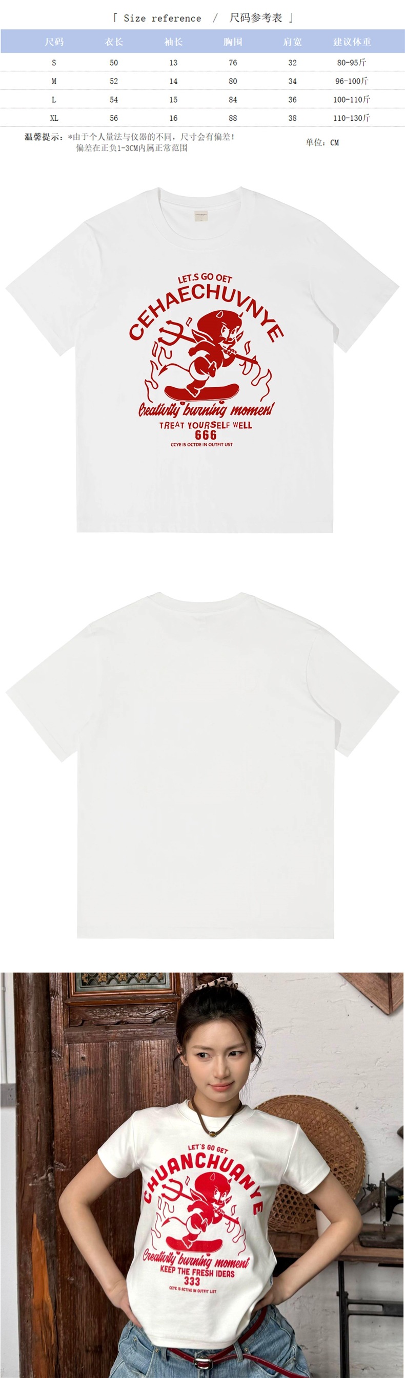 코밍 코튼 인 트렌디 스트레치 스타일 바닥 셔츠 여름 반팔 티셔츠 여성용 레드 프린트 탑 슬리밍