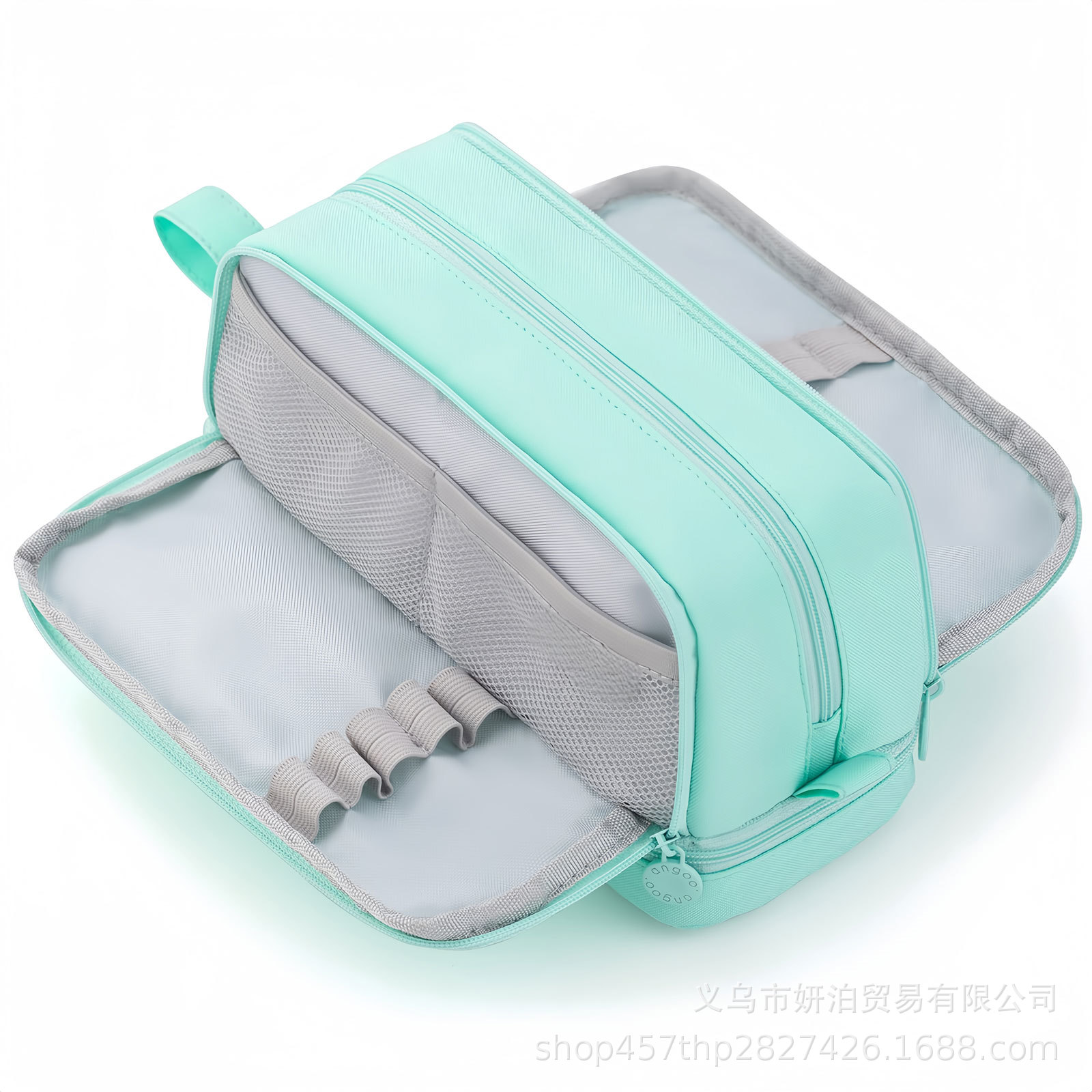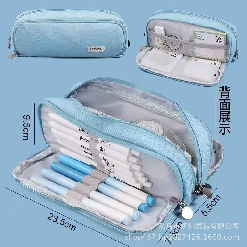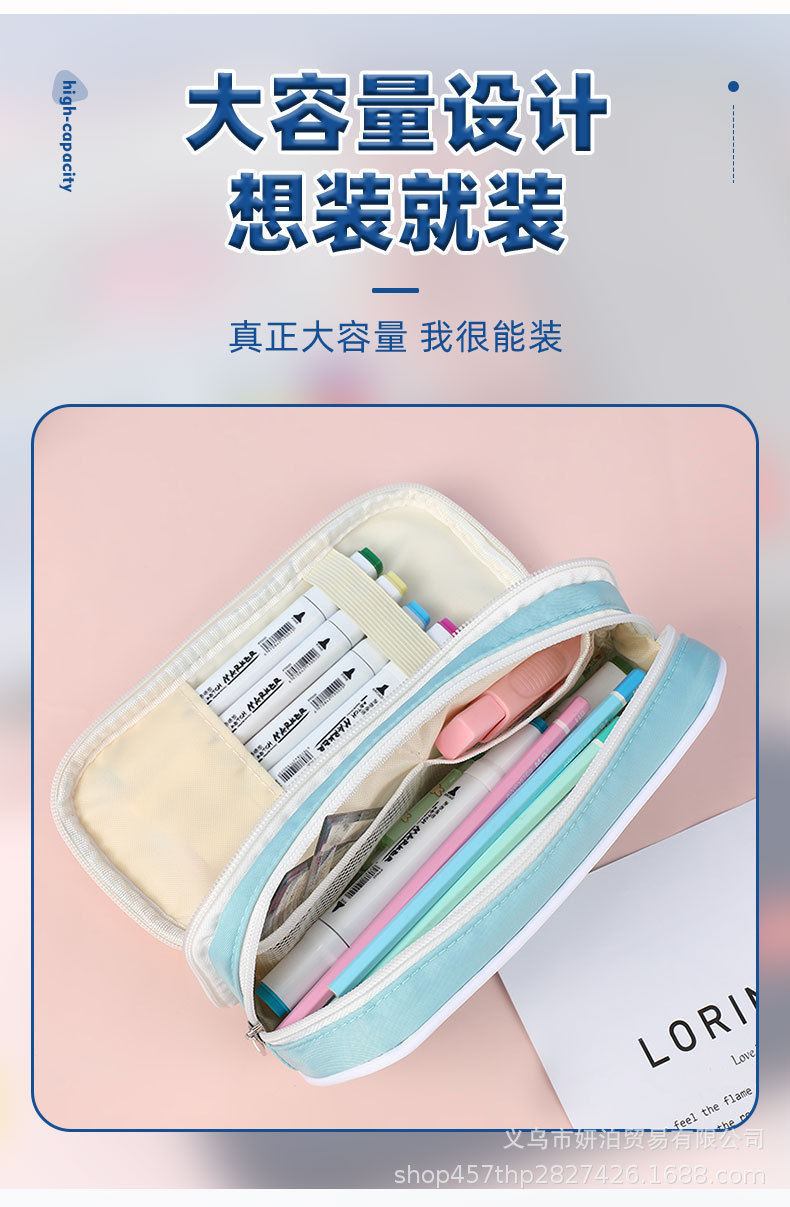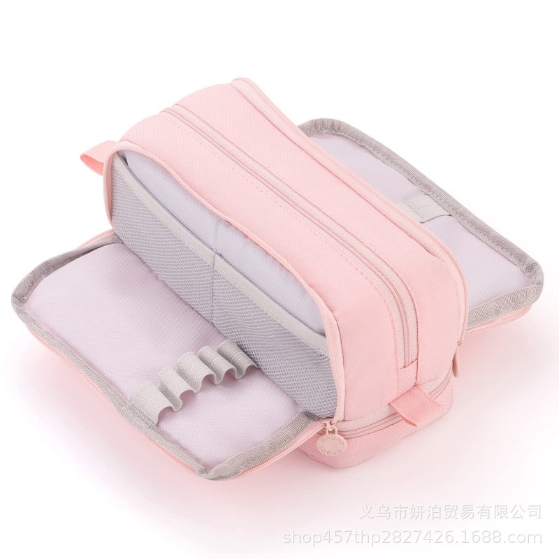 Amazon 컬러 매칭 다층 캔버스 텔레스코픽 연필 가방 초등학생 다기능 더블 지퍼 간단한 대용량 문구 가방