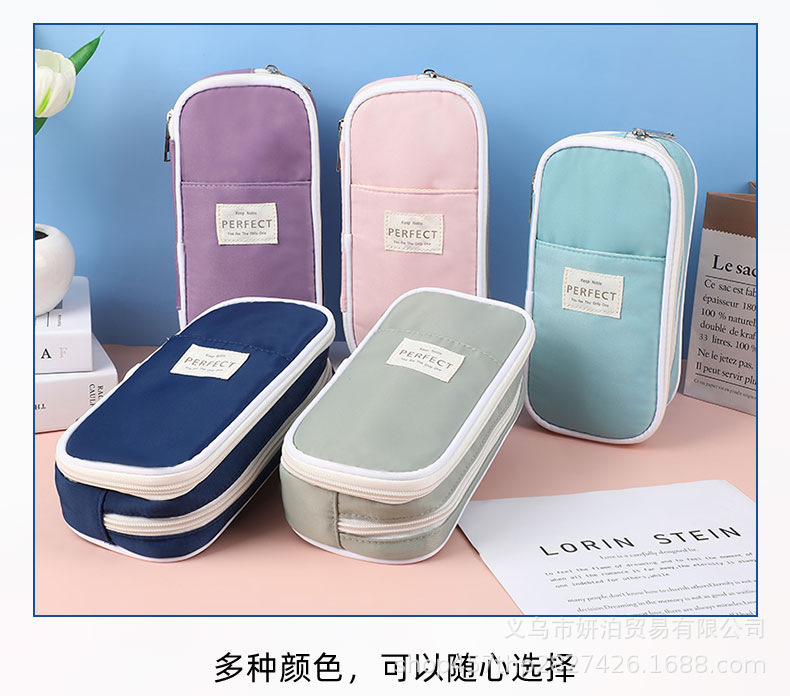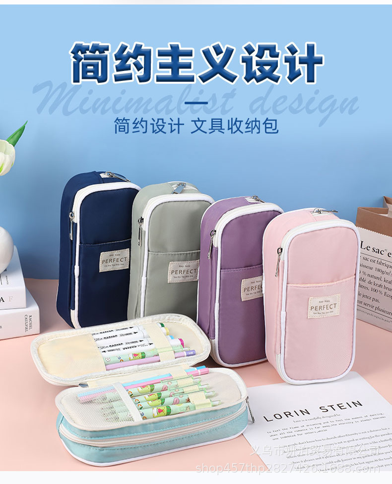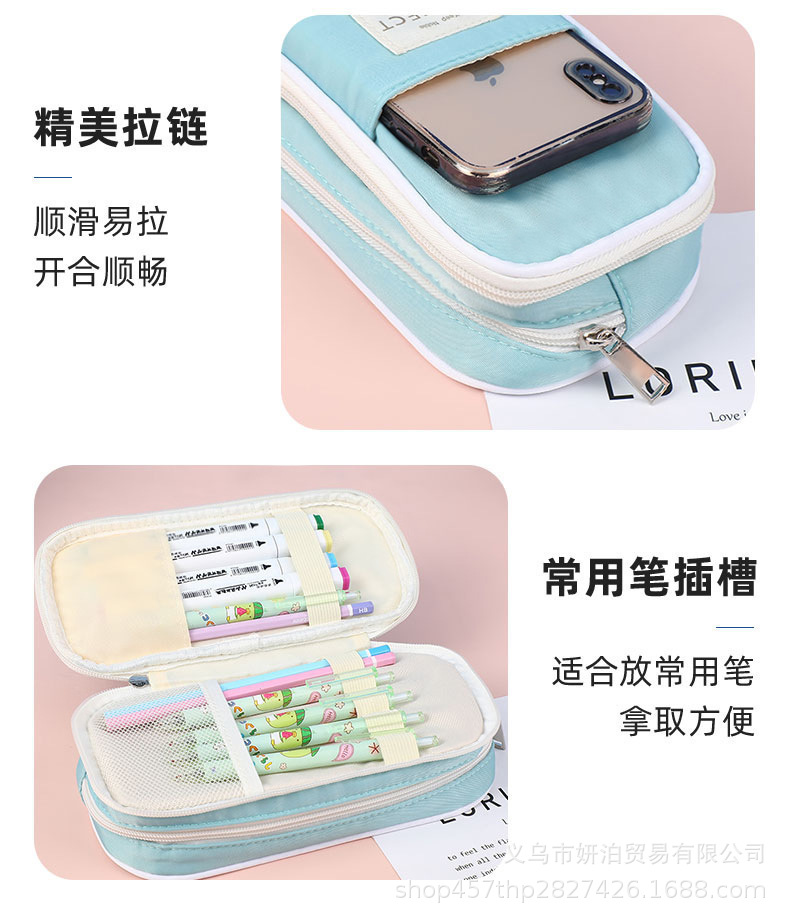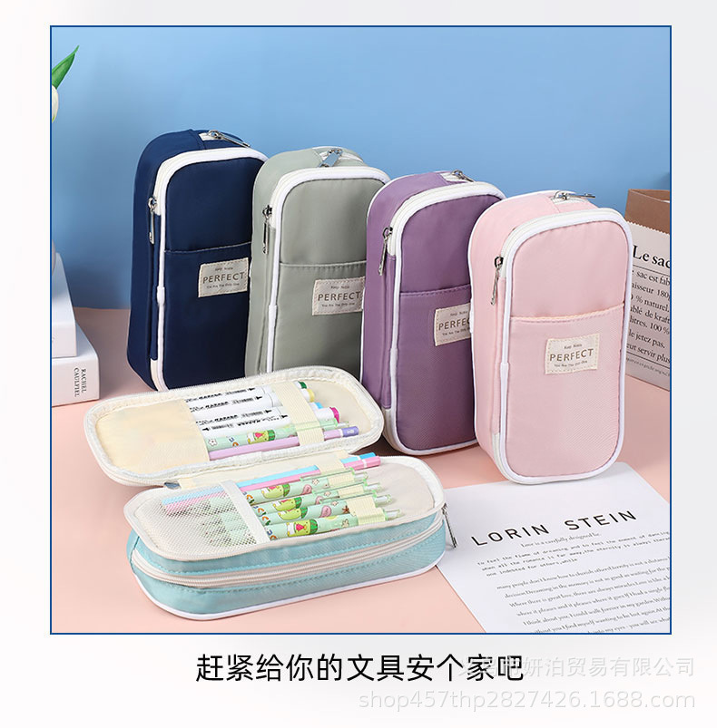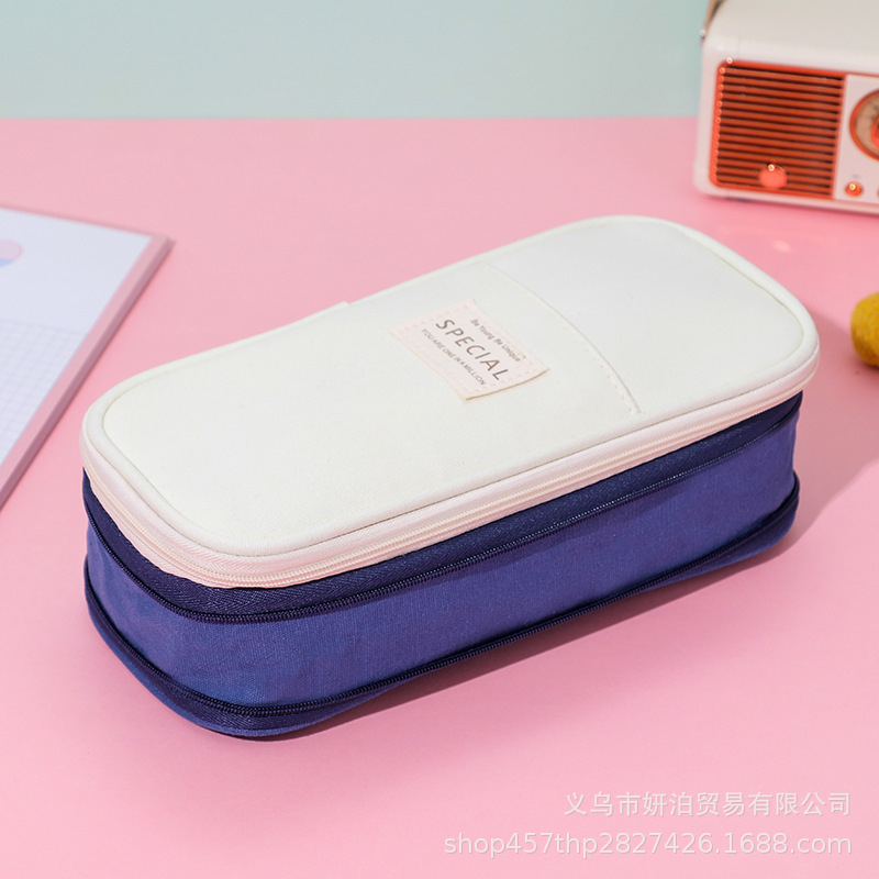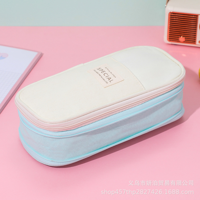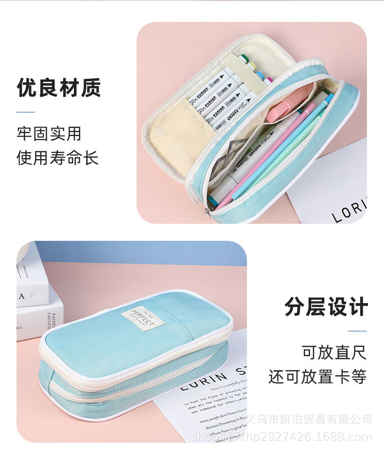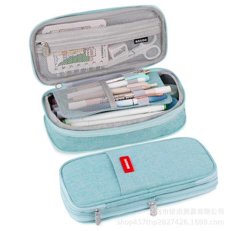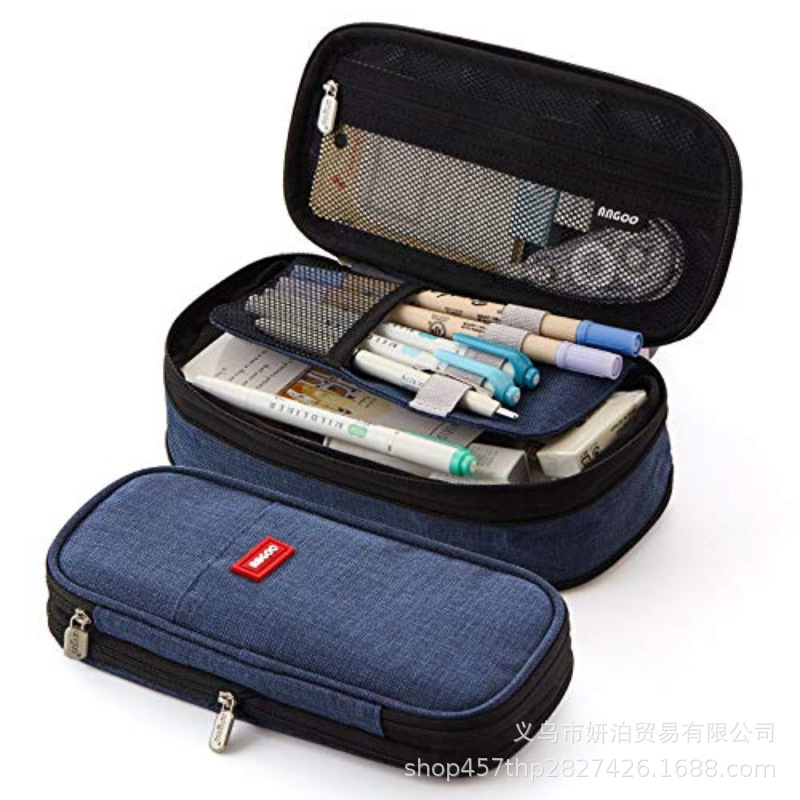 Amazon 컬러 매칭 다층 캔버스 텔레스코픽 연필 가방 초등학생 다기능 더블 지퍼 간단한 대용량 문구 가방스토어 가기