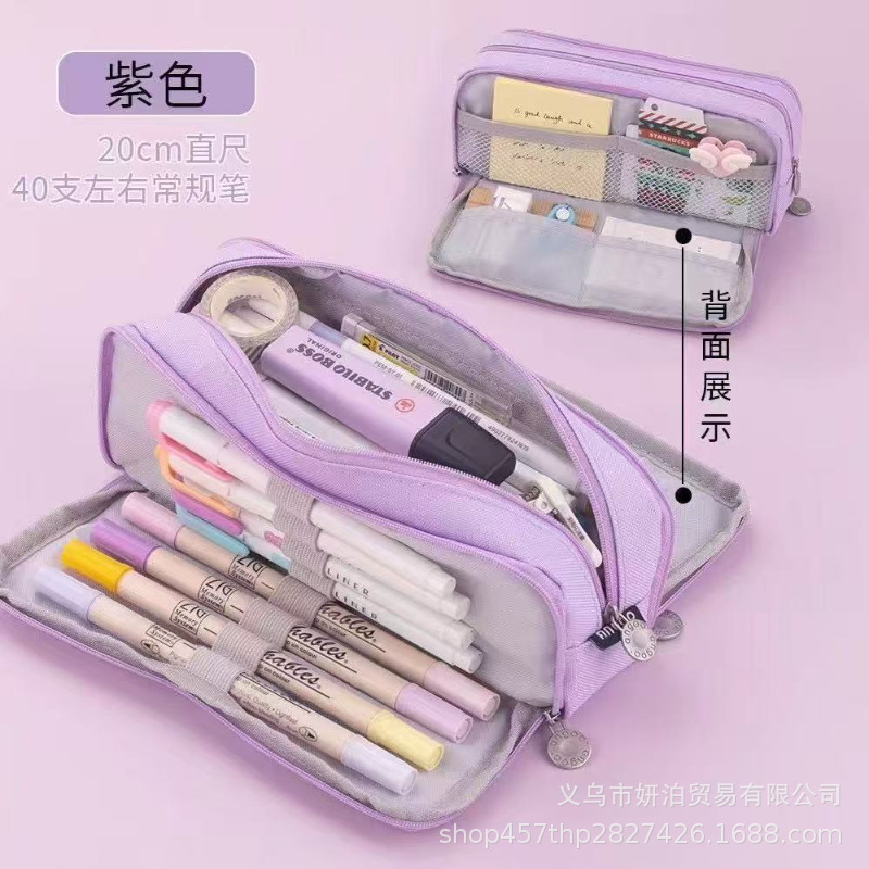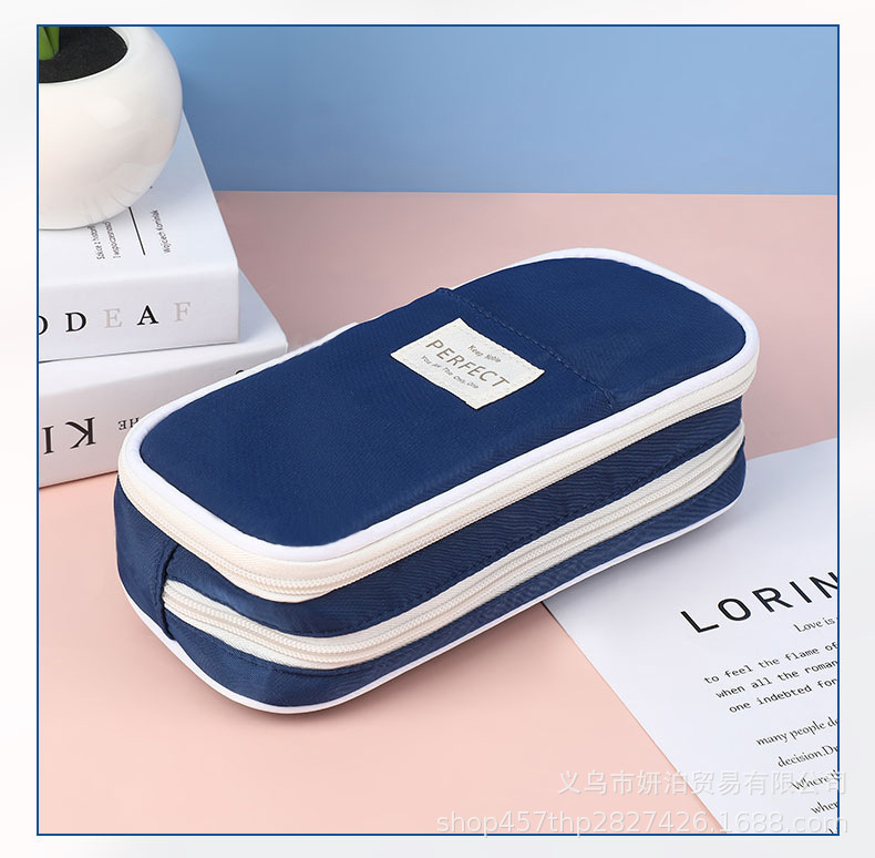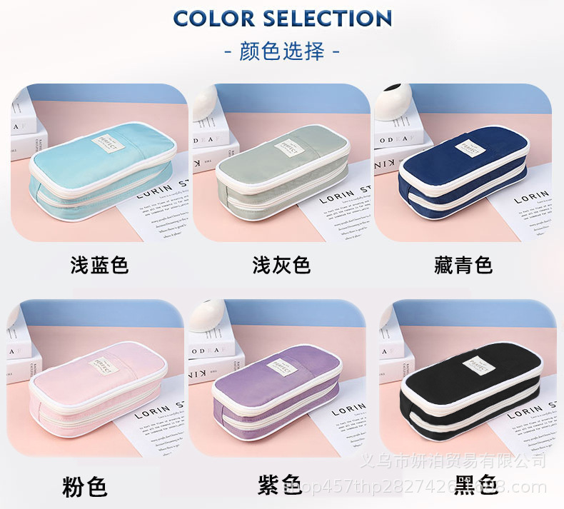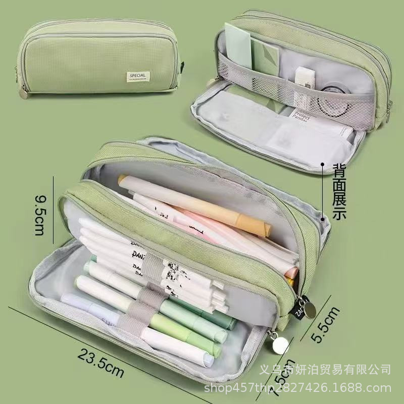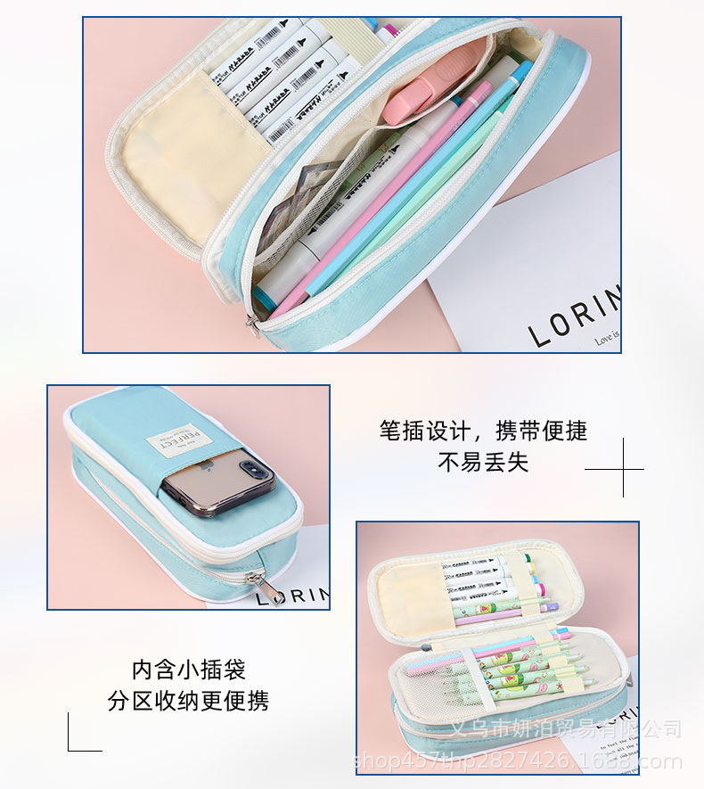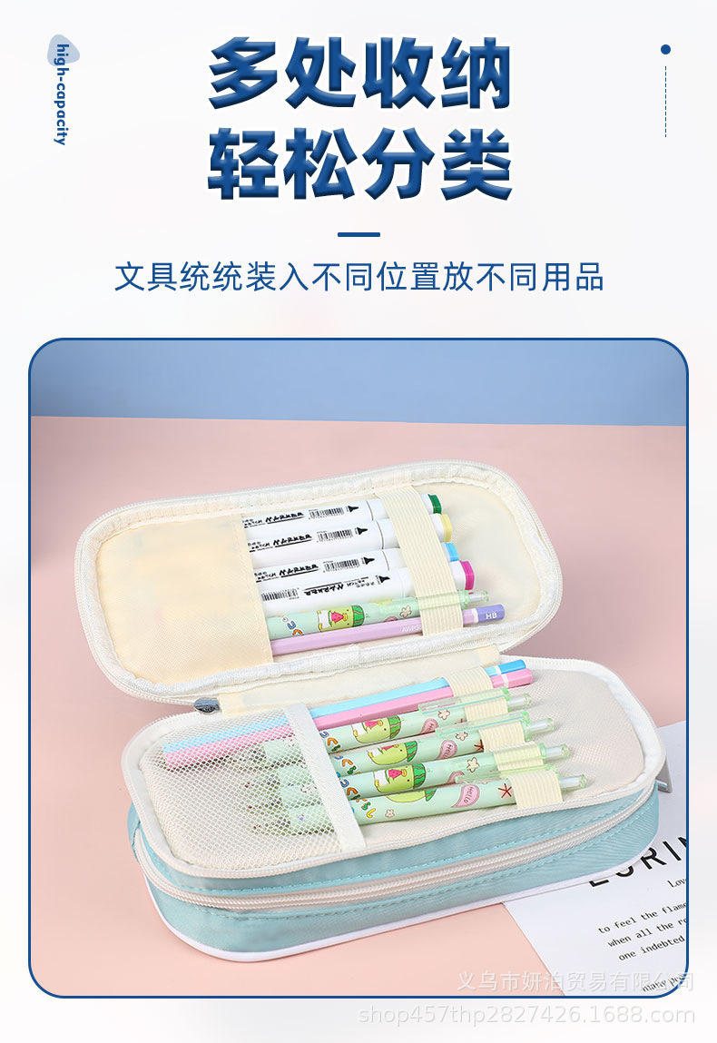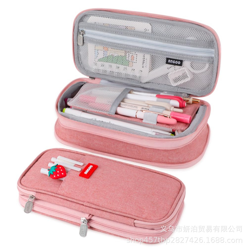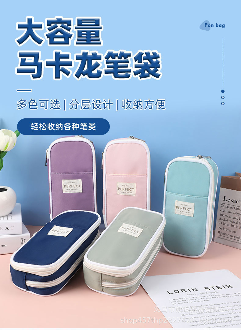 Amazon 컬러 매칭 다층 캔버스 텔레스코픽 연필 가방 초등학생 다기능 더블 지퍼 간단한 대용량 문구 가방스토어 가기