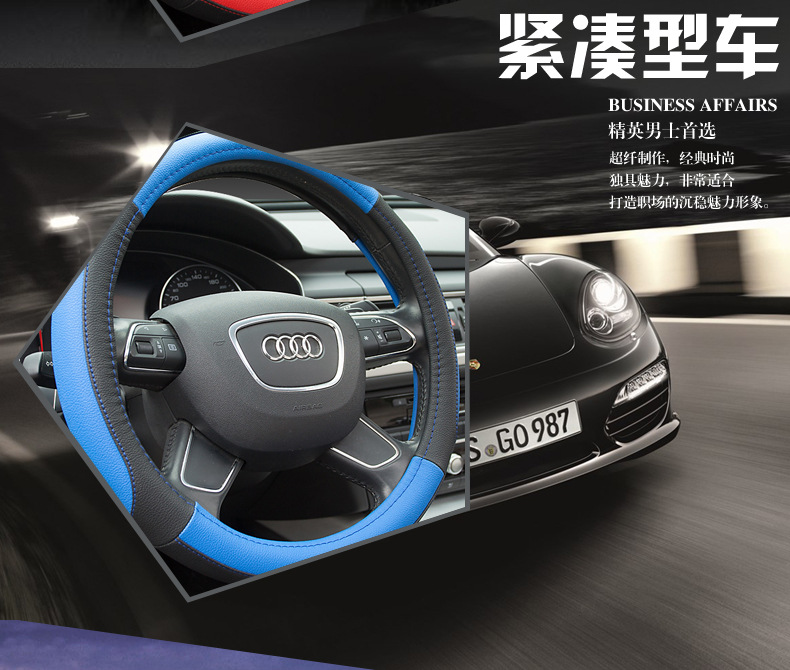 자동차 핸들 커버 범용 표준 크기 14.5- 15inch 마이크로 화이버 가죽 스티어링 휠 커버