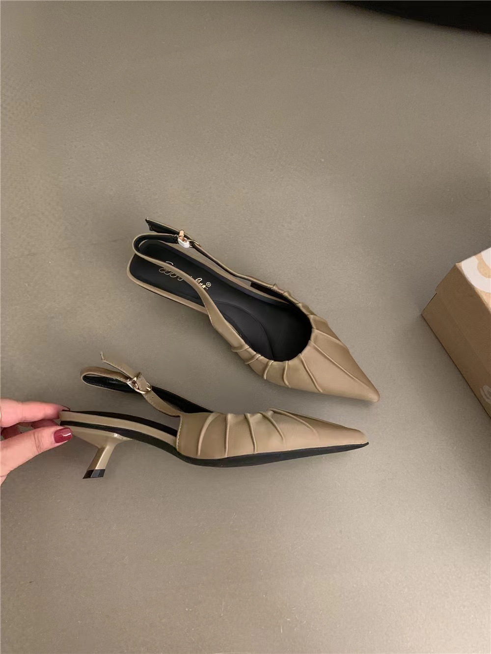 뾰족한 스틸레토 힐 여성 신발 2025 봄과 여름 새로운 스커트 이브닝 슈즈가 달린 바오터우 빈 샌들스토어 가기