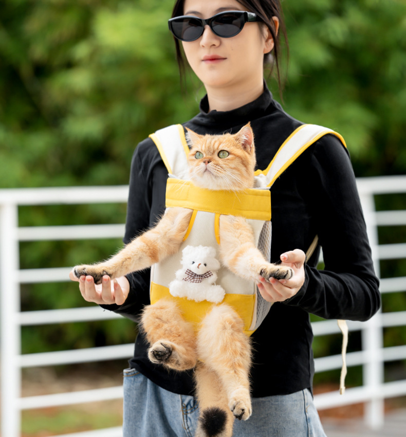 고양이 배낭, 귀여운 만화 곰 애완 동물 배낭, 작은 개, 야외 휴대용 가슴 개 가방, 고양이 가방