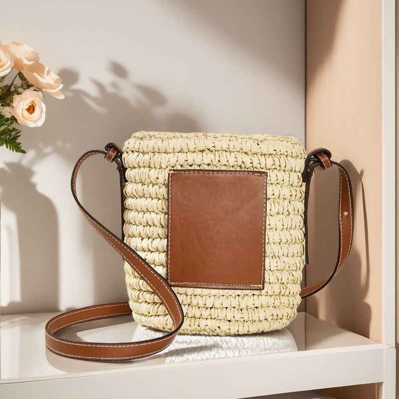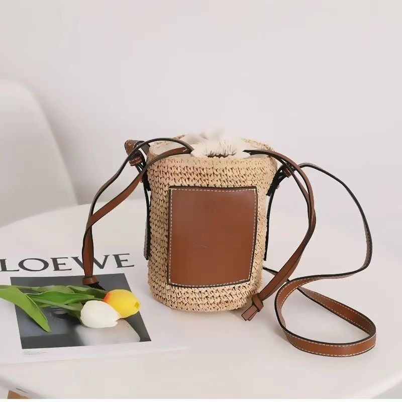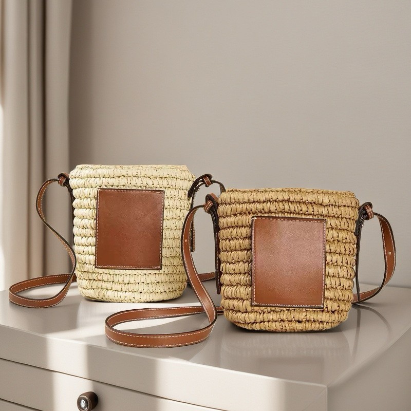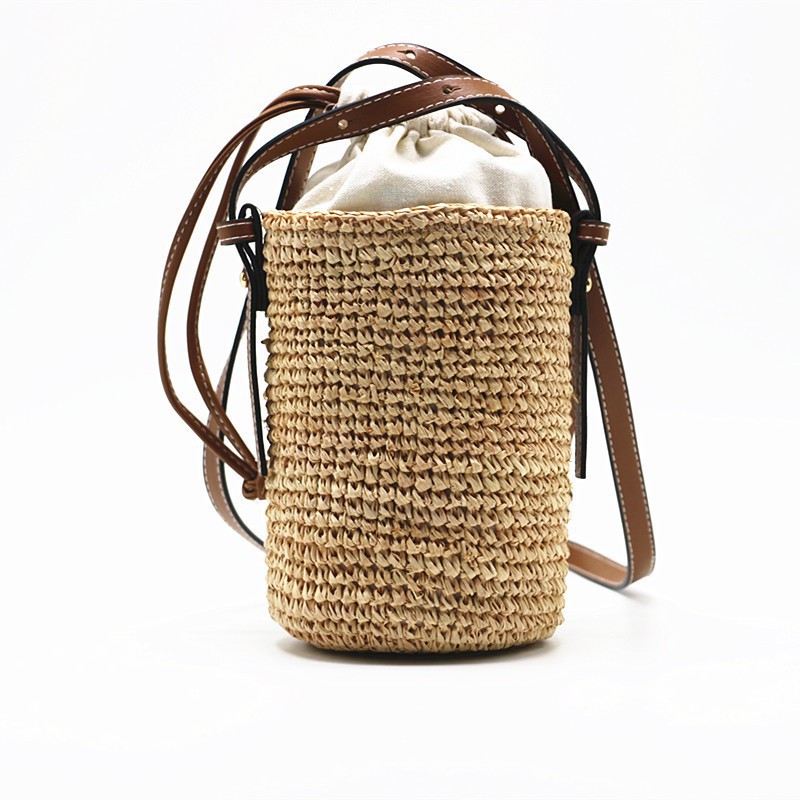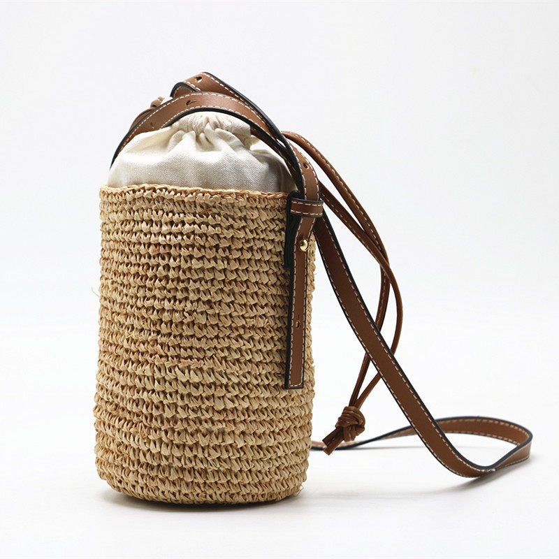 여름 원통형 밀짚 가방, 손으로 짠 가방, 작은 크로스백, 버킷백, 해변 휴가 비치백, 토트백