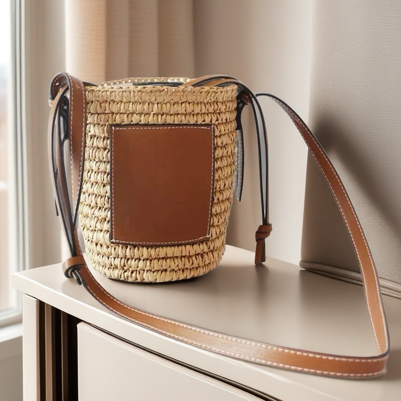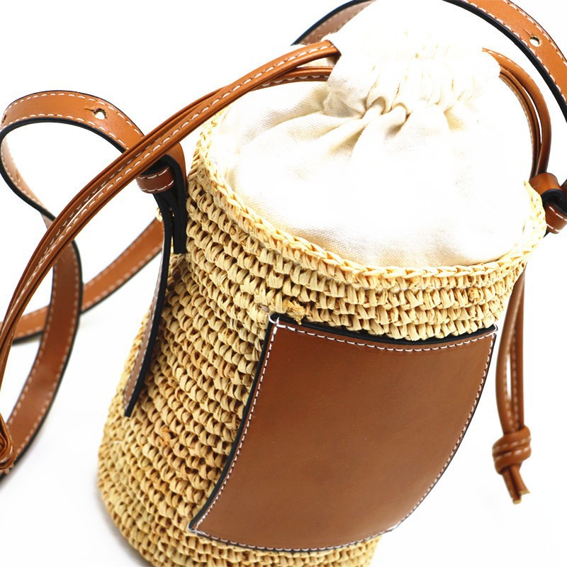 여름 원통형 밀짚 가방, 손으로 짠 가방, 작은 크로스백, 버킷백, 해변 휴가 비치백, 토트백스토어 가기