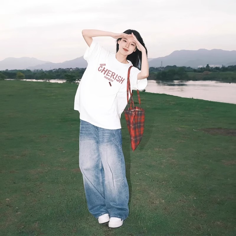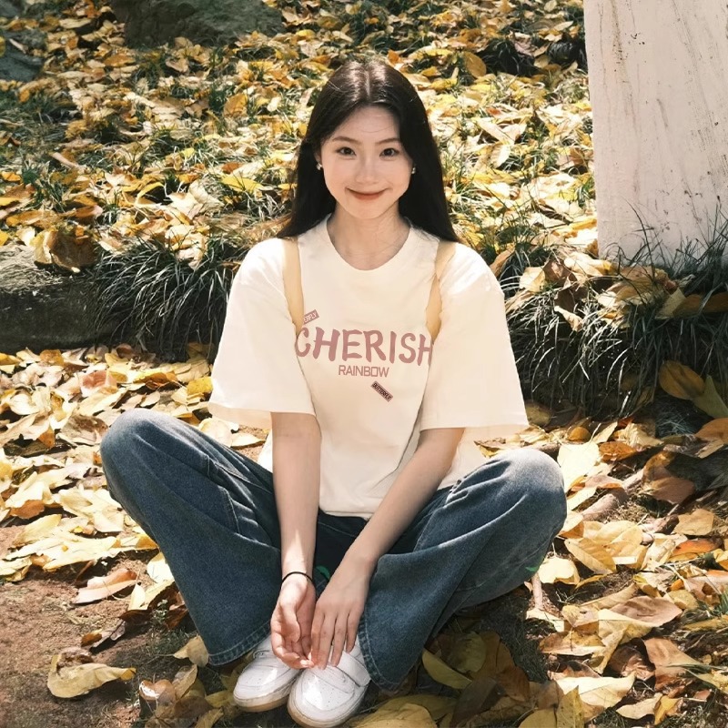 여성용 흰색 반팔 티셔츠 2026년 신상 순면 반팔 루즈핏 여름 베이스 레이어 이너웨어 유니크 디자인 탑스토어 가기