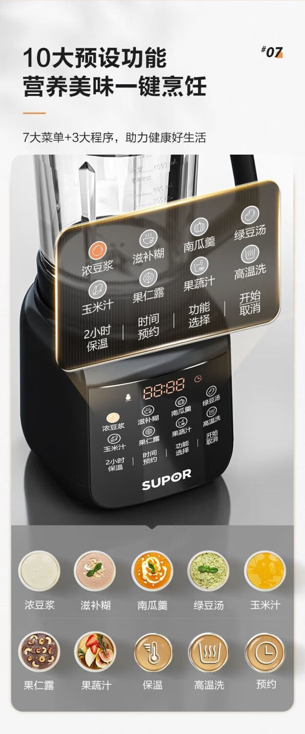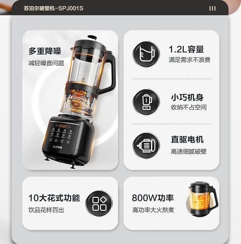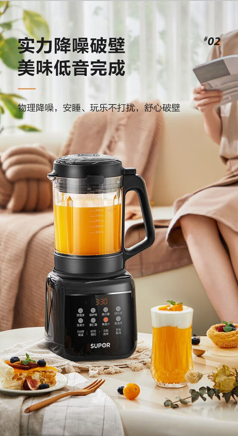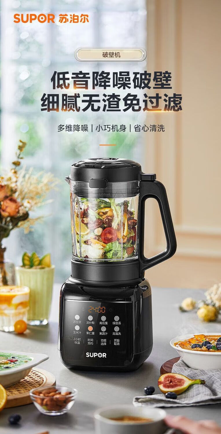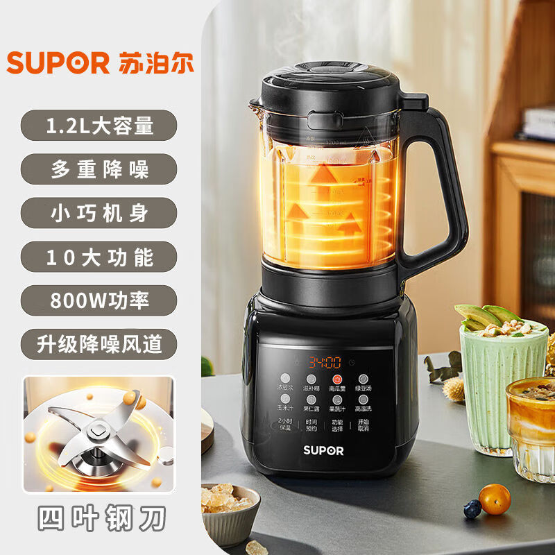 Su.Boer 벽 파괴 기계에 적합 가정용 두유 기계 저음 소음 감소 1.2L 용량 식품 보충 믹서 SPJ001스토어 가기