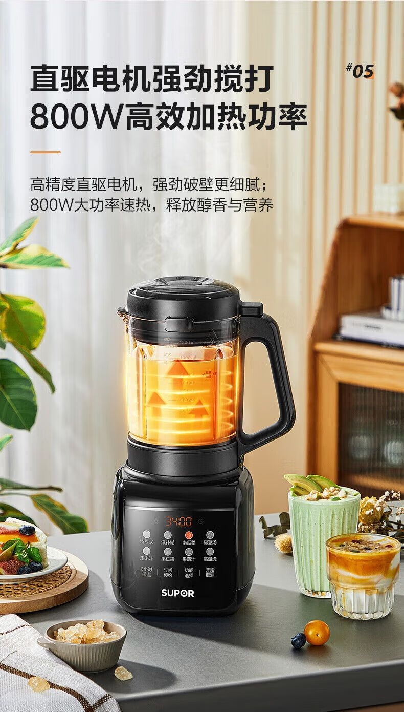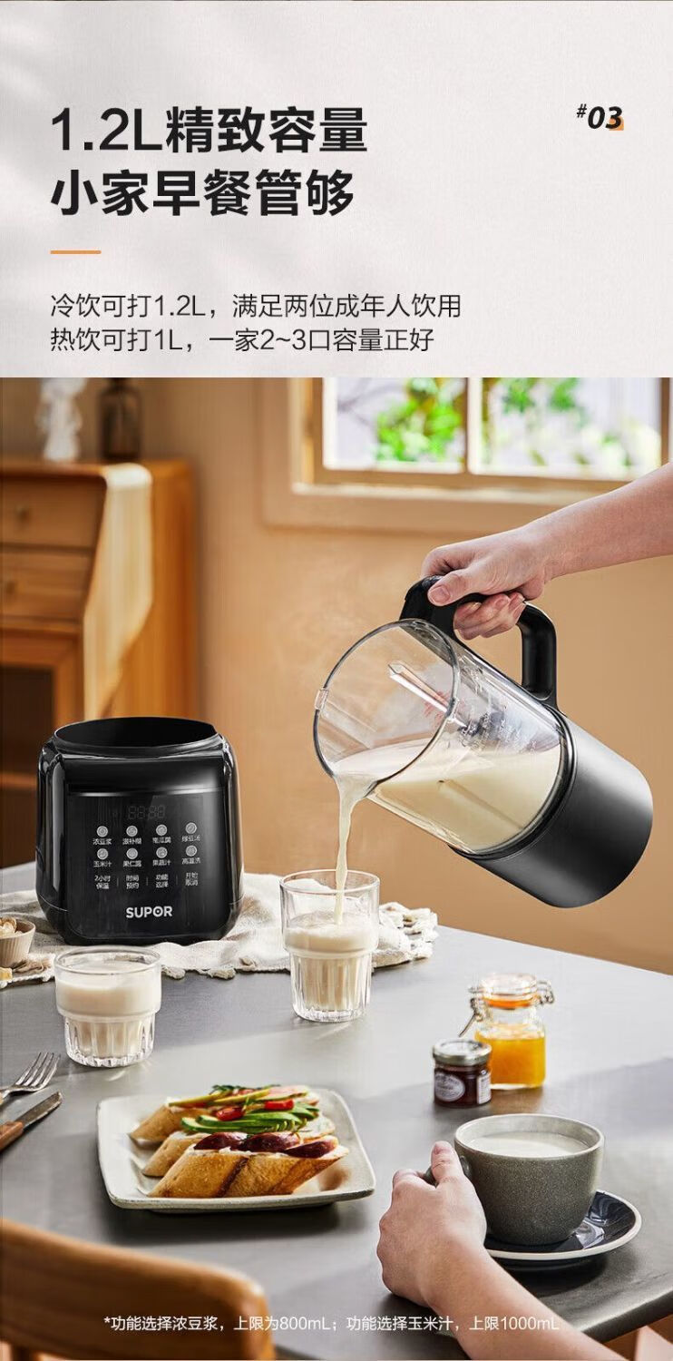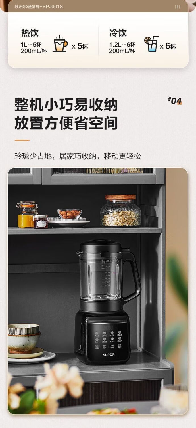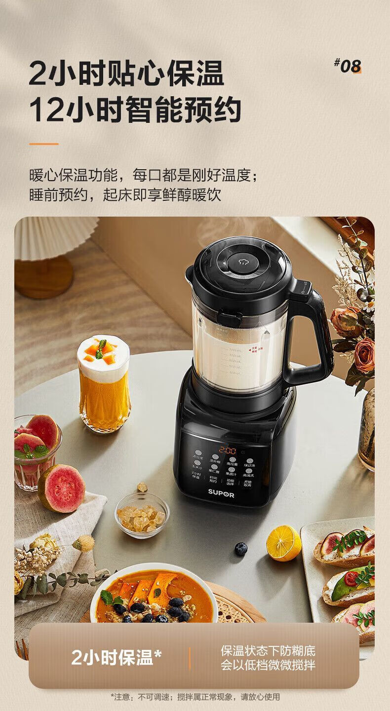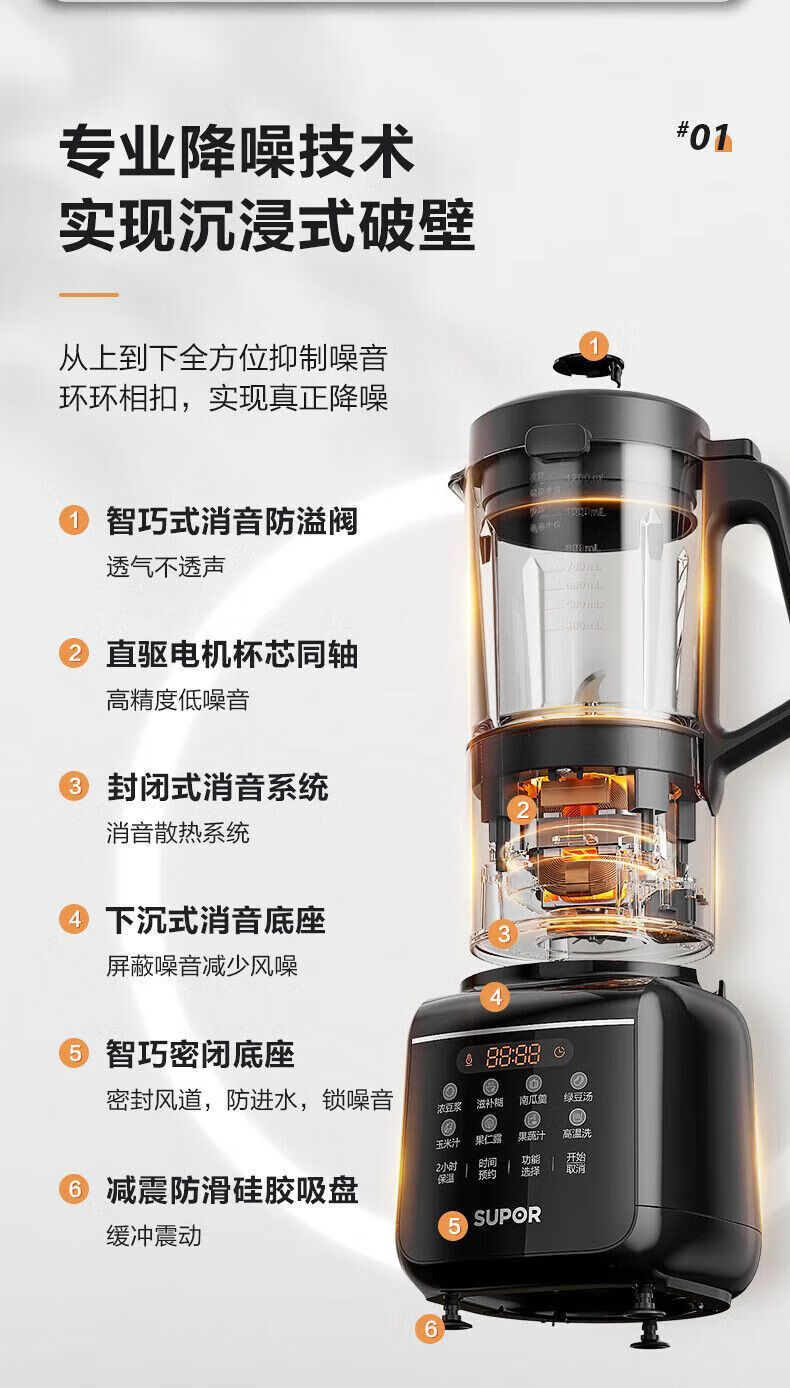 Su.Boer 벽 파괴 기계에 적합 가정용 두유 기계 저음 소음 감소 1.2L 용량 식품 보충 믹서 SPJ001