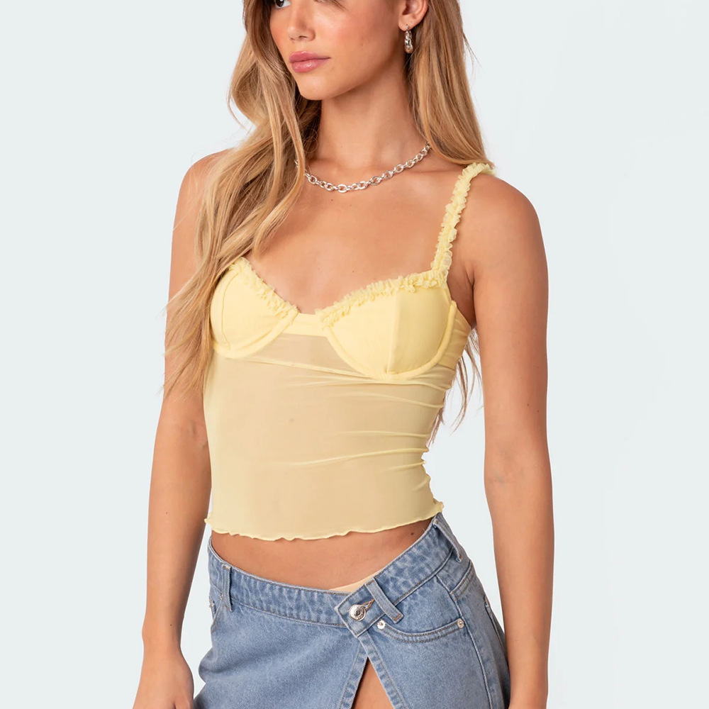 유럽과 미국의 대외 무역 국경 간 여성의 표범 무늬 서스펜더 메쉬 레이스 강철 링 바디 쉐이핑 섹시한 튜브 탑 백리스 시스루 조끼스토어 가기