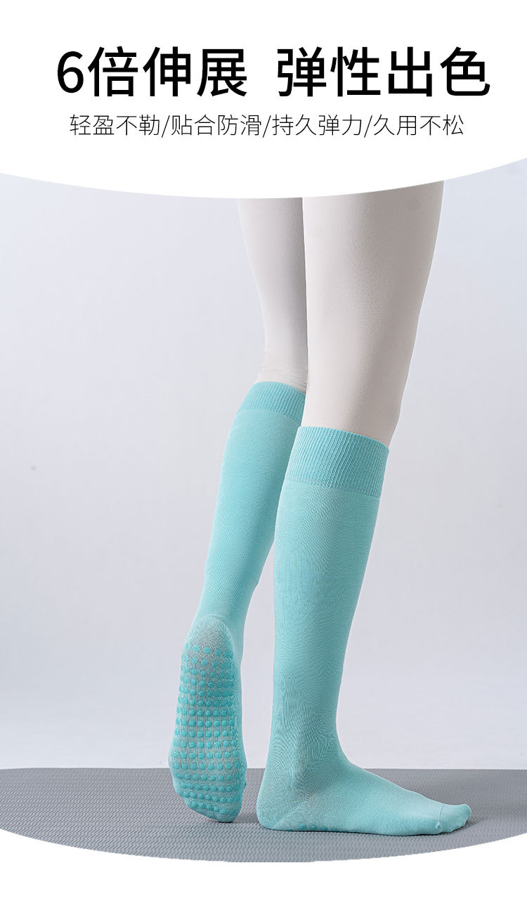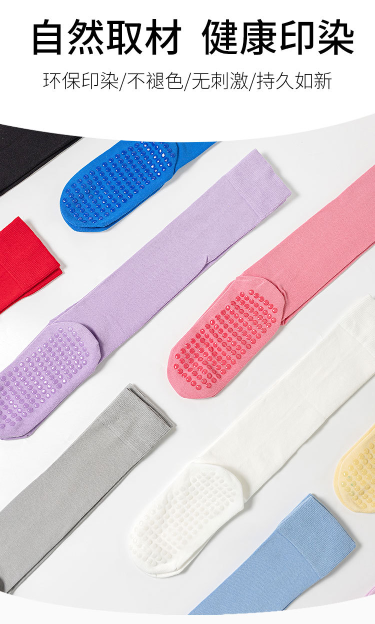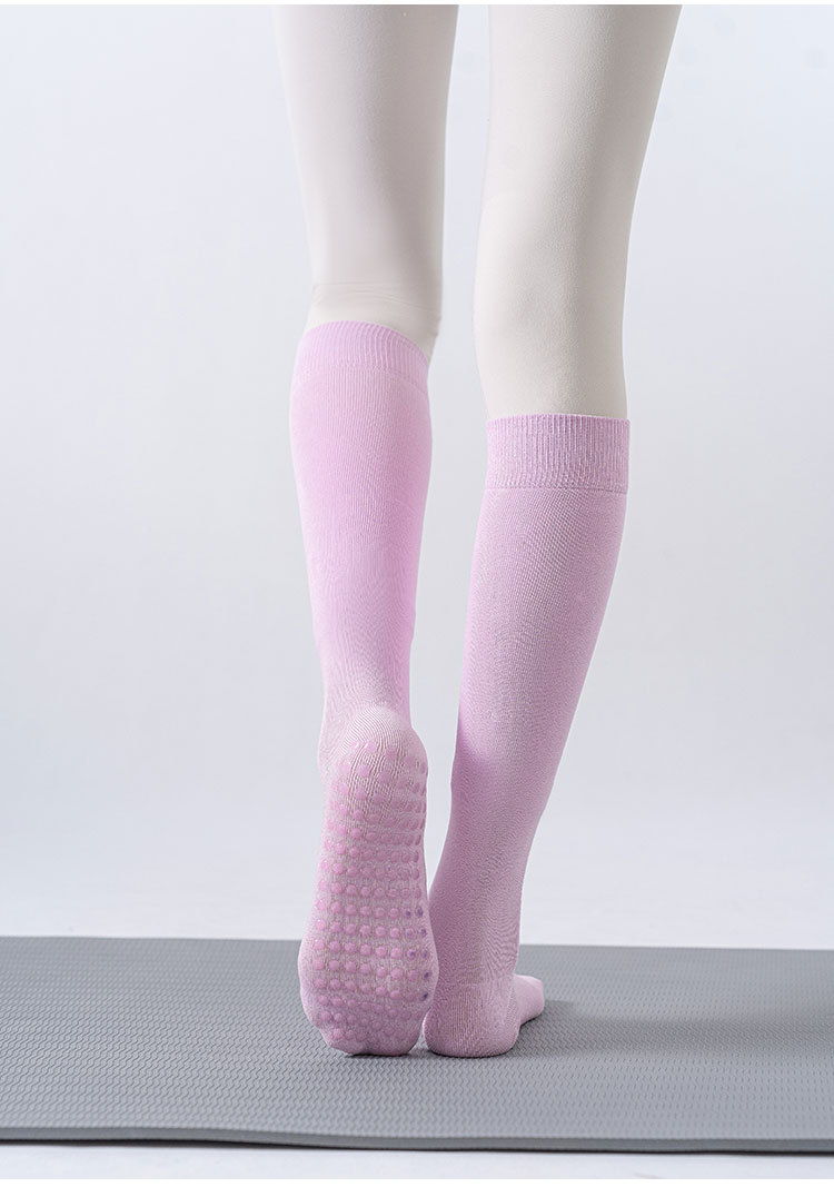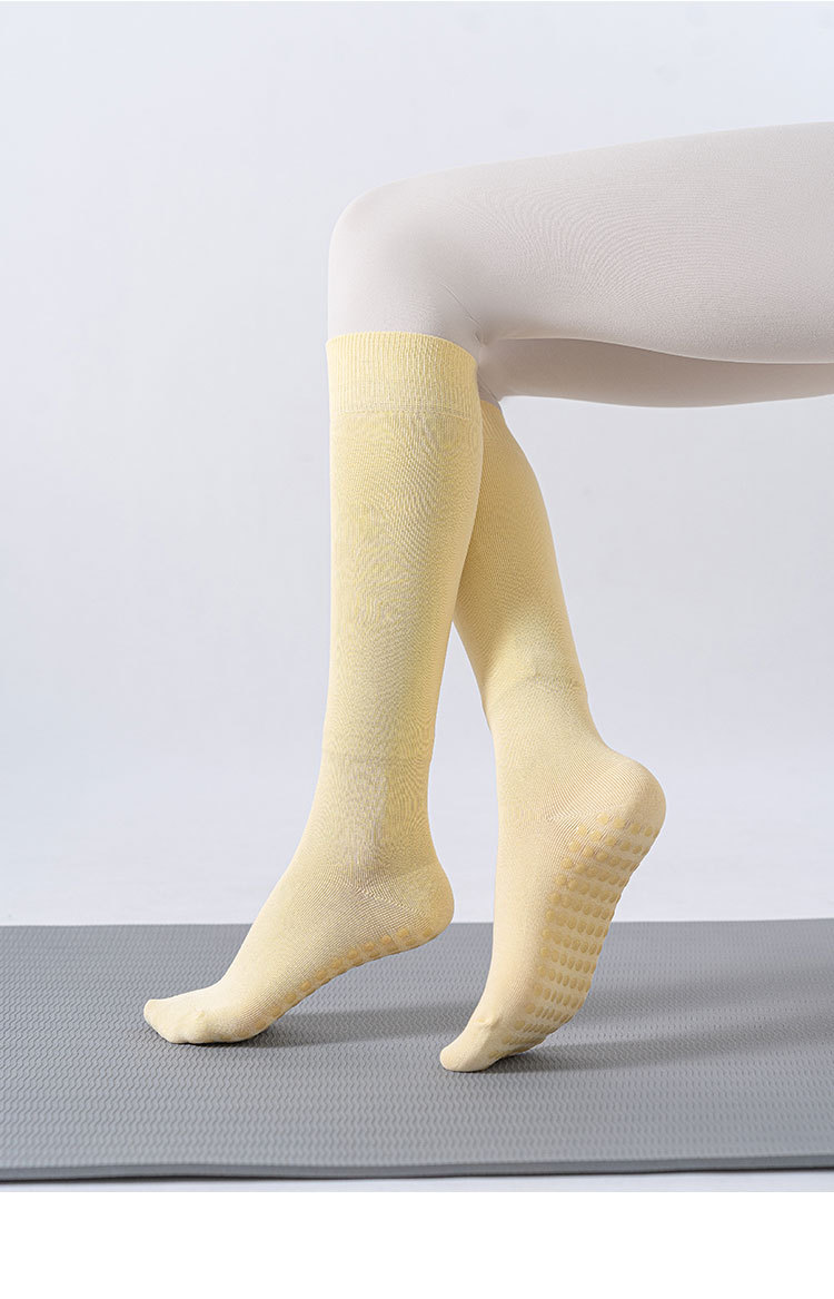 여성용 요가 양말, 긴 뼈없는면 양말, 단색 다리 슬리밍 종아리 양말, 전문 미끄럼 방지 피트니스 필라테스 스포츠 양말
