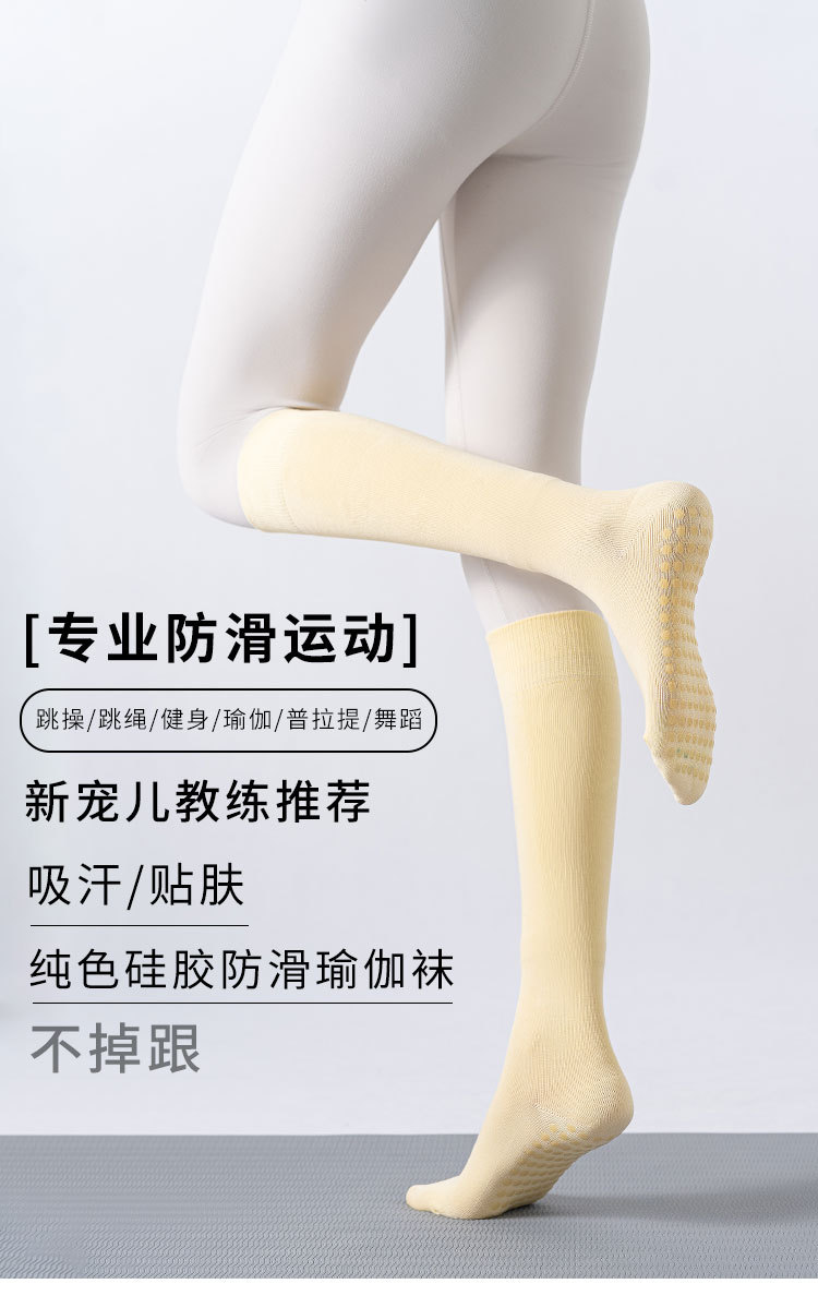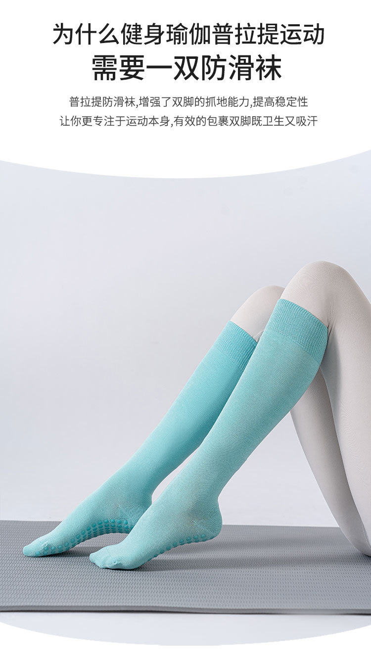 여성용 요가 양말, 긴 뼈없는면 양말, 단색 다리 슬리밍 종아리 양말, 전문 미끄럼 방지 피트니스 필라테스 스포츠 양말스토어 가기