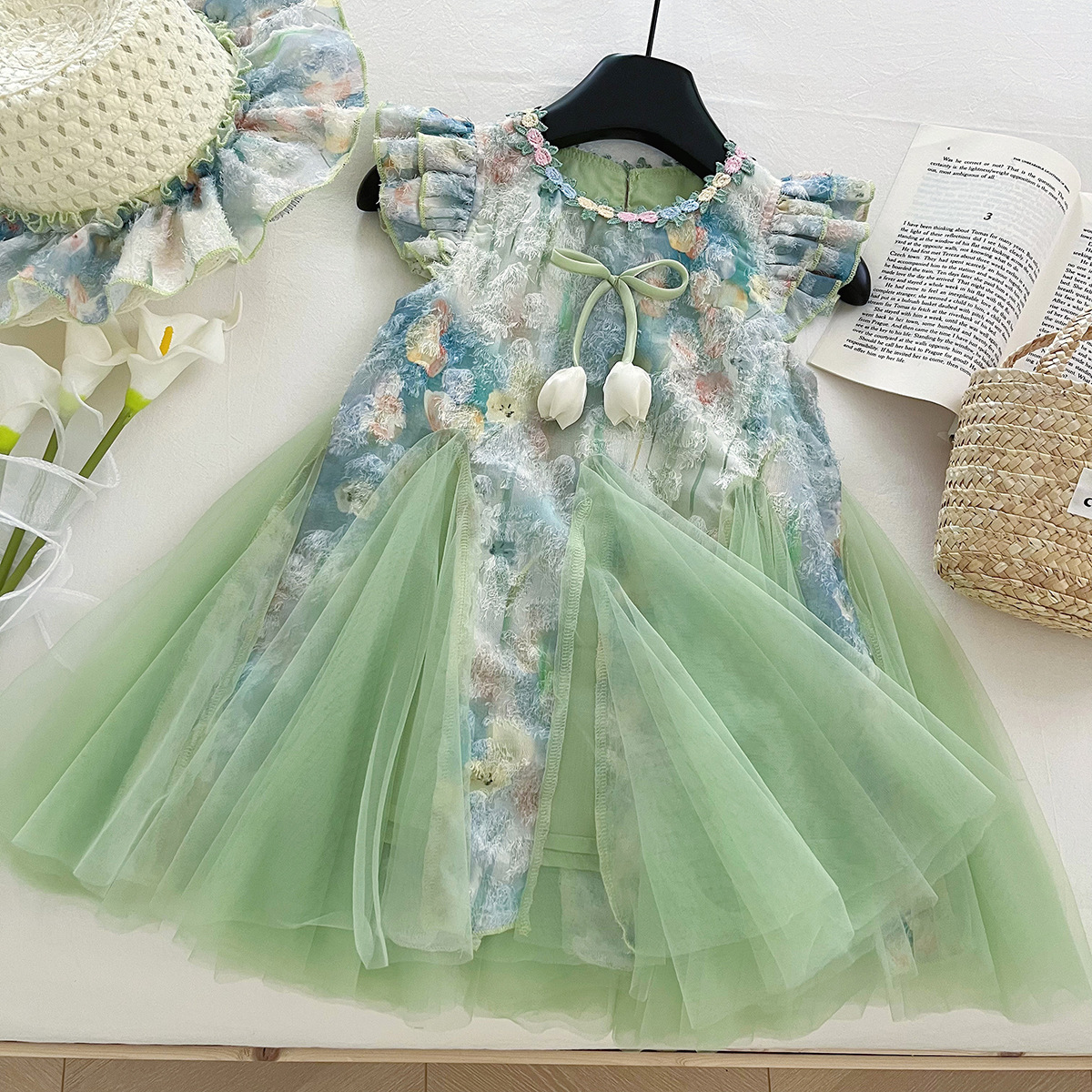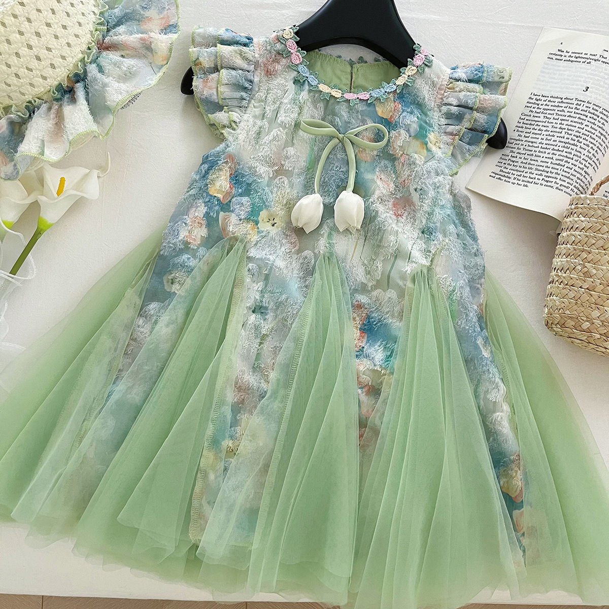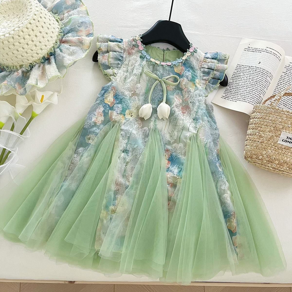 한국 스타일 여자 스커트 새로운 여름 스타일 여자 슈퍼 요정 꽃 스커트 어린이 패션 민소매 드레스 아동 의류스토어 가기