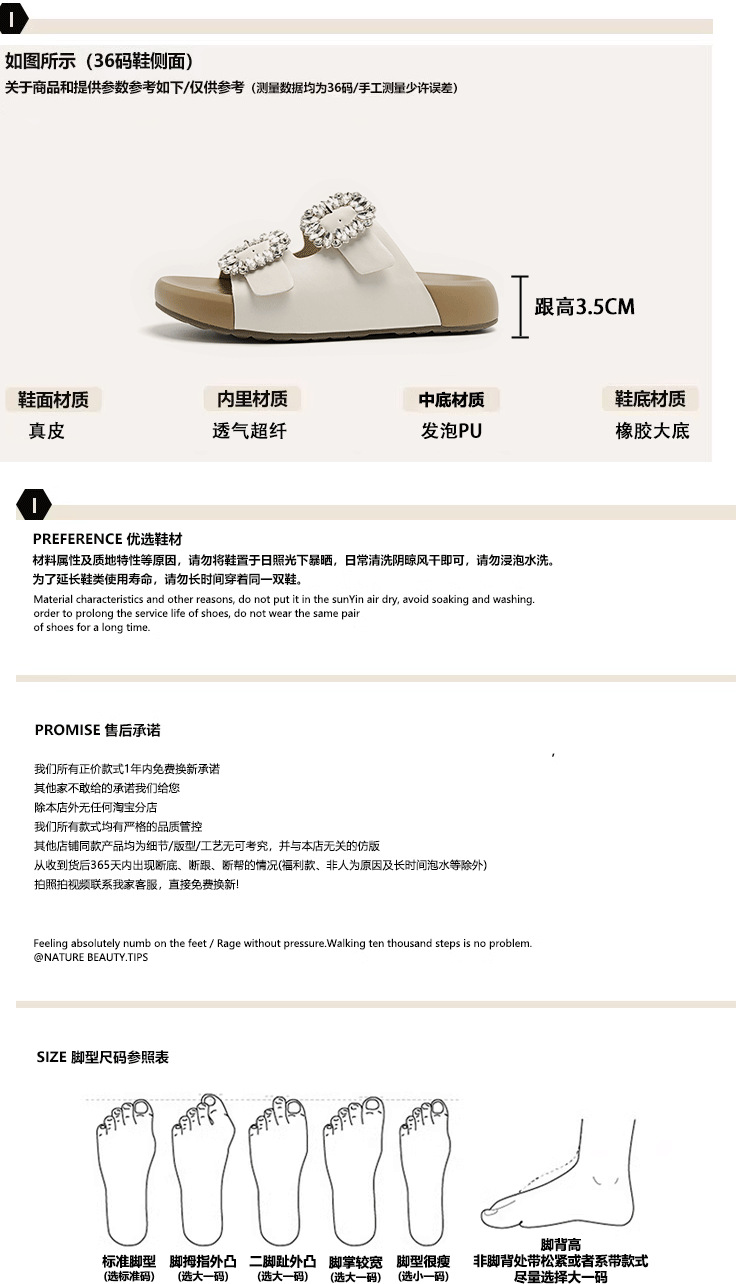 여름 아우터로 입기 좋은 여성용 사각 버클 라인스톤 천연가죽 더블 스트랩 작은 사이즈 32 하프 슬리퍼스토어 가기