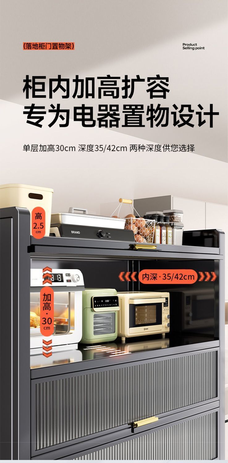 주방 수납 선반 방진 찬장 대용량 수납 두꺼운 다층 다기능 전자 레인지 플립 도어 캐비닛
