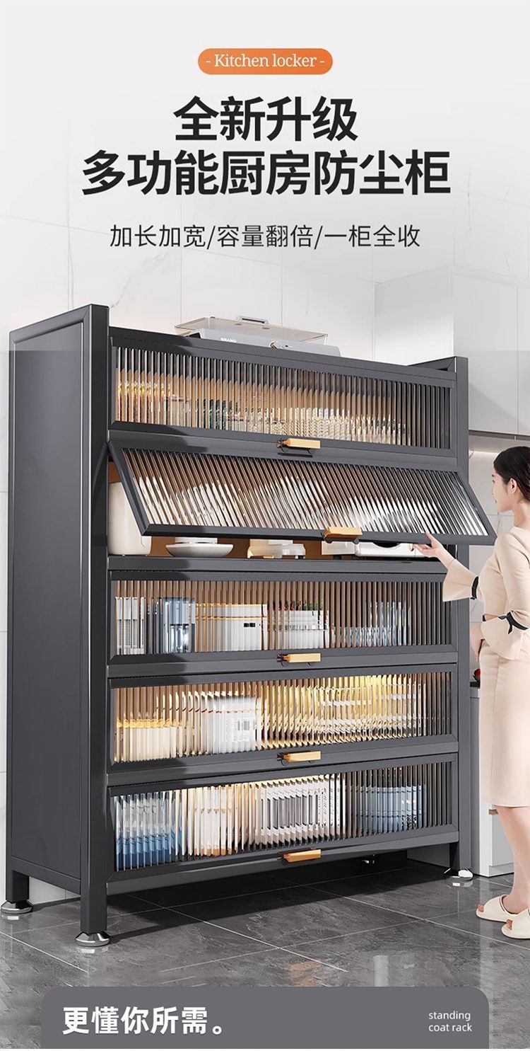 주방 수납 선반 방진 찬장 대용량 수납 두꺼운 다층 다기능 전자 레인지 플립 도어 캐비닛스토어 가기