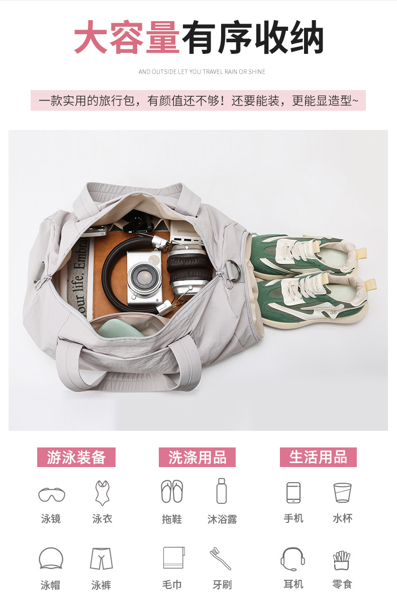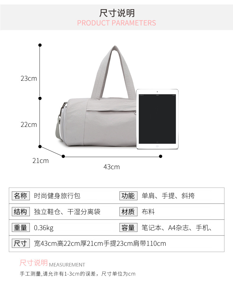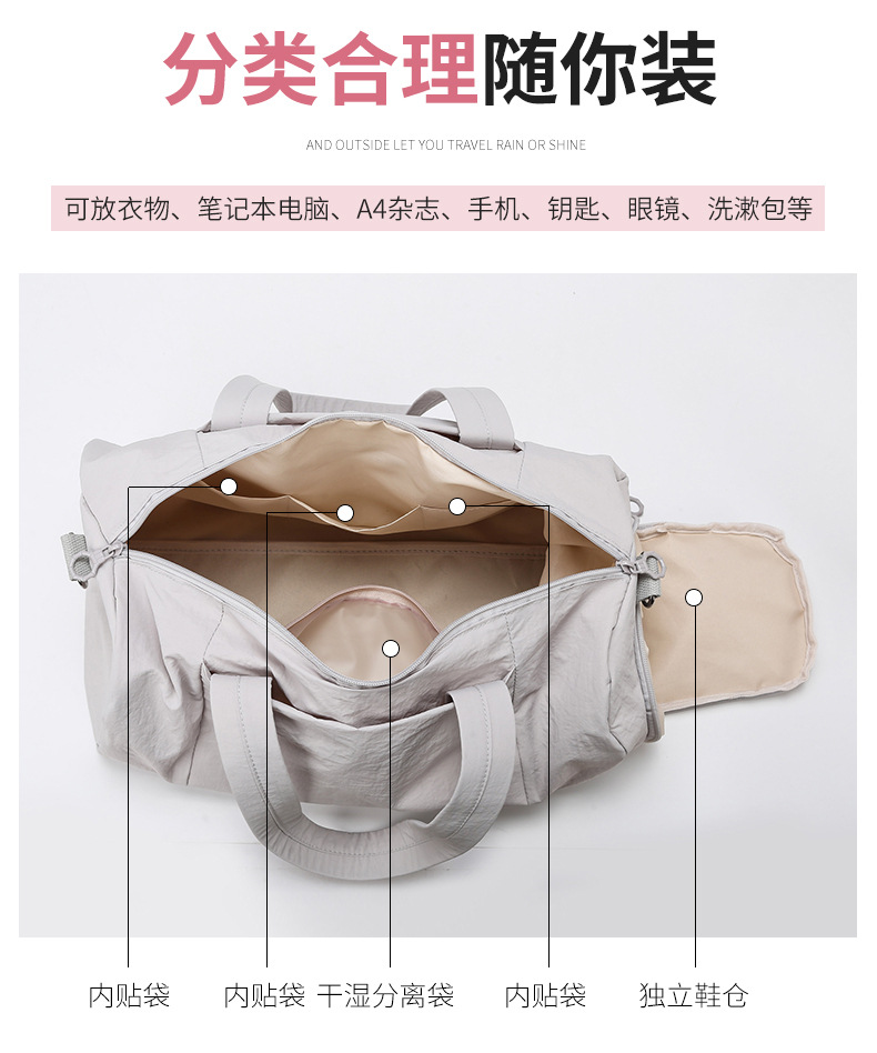 국경 간 새로운 간단한 여행 가방 대용량 캐주얼 나들이 스포츠 피트니스 가방 건식 및 습식 분리 단거리 수하물 가방