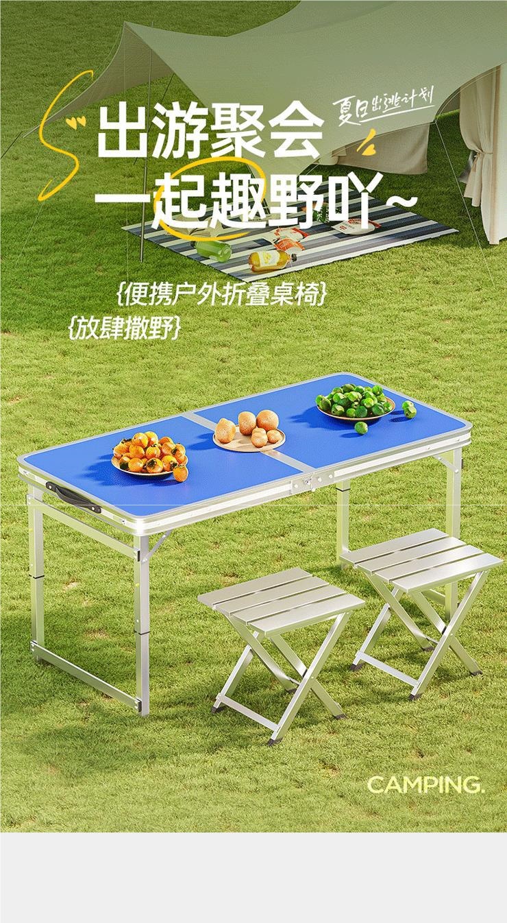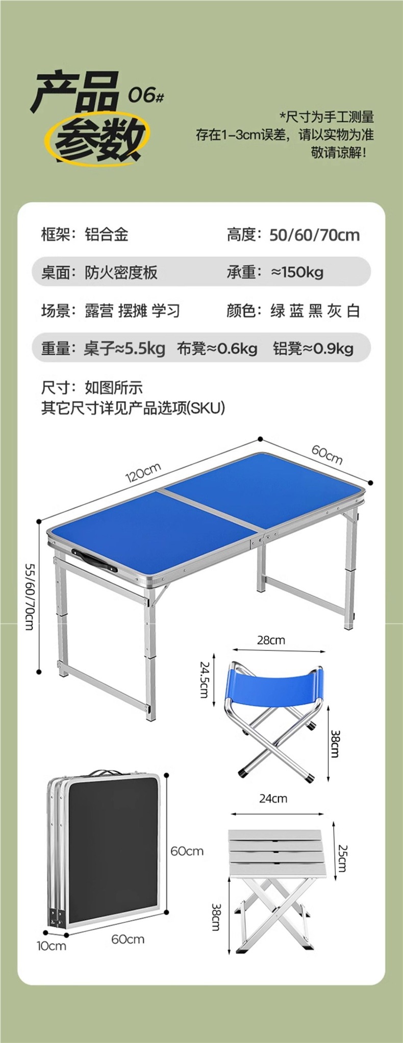 • 업그레이드된 대외 무역 품질 [업그레이드된 알루미늄 합금 사각 튜브] 120*60cm 파란색 + 알루미늄 의자 4개