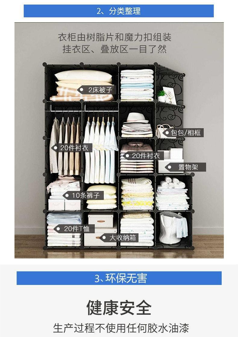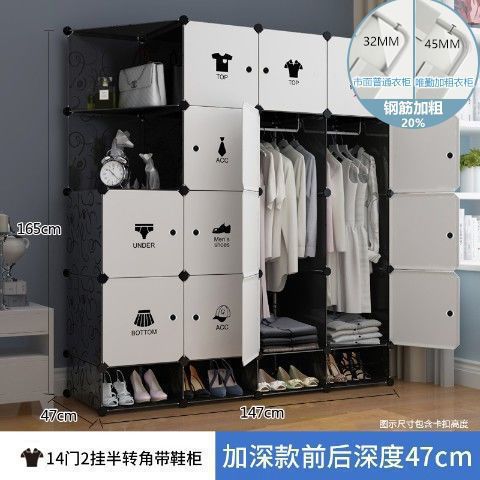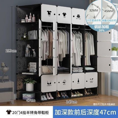가정용 성인 간단한 옷장 조립 침실 임대 주택 기숙사 어린이 보관 유물 플라스틱 천 옷장스토어 가기