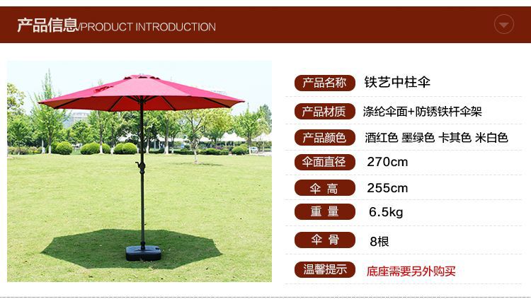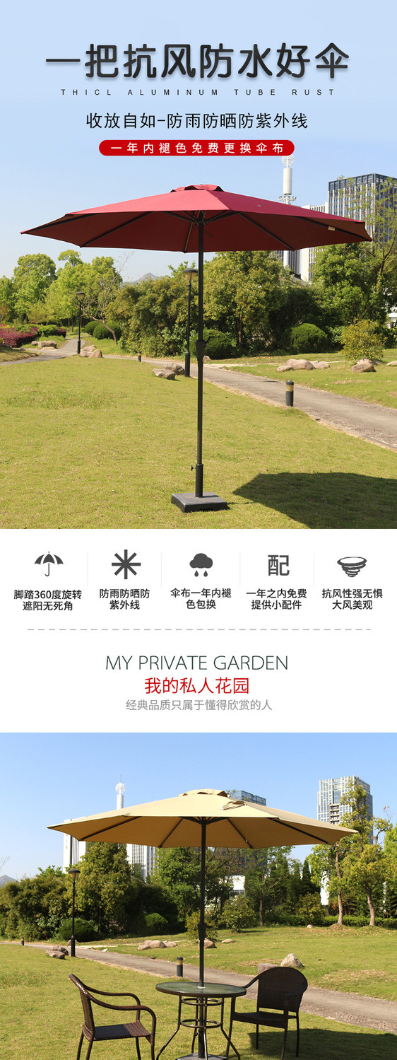 야외 파라솔, 태양 우산, 중간 기둥 우산, 빌라 안뜰 가드 키트 우산, 레저 해변 빌라 정원 우산, Pawsihua스토어 가기