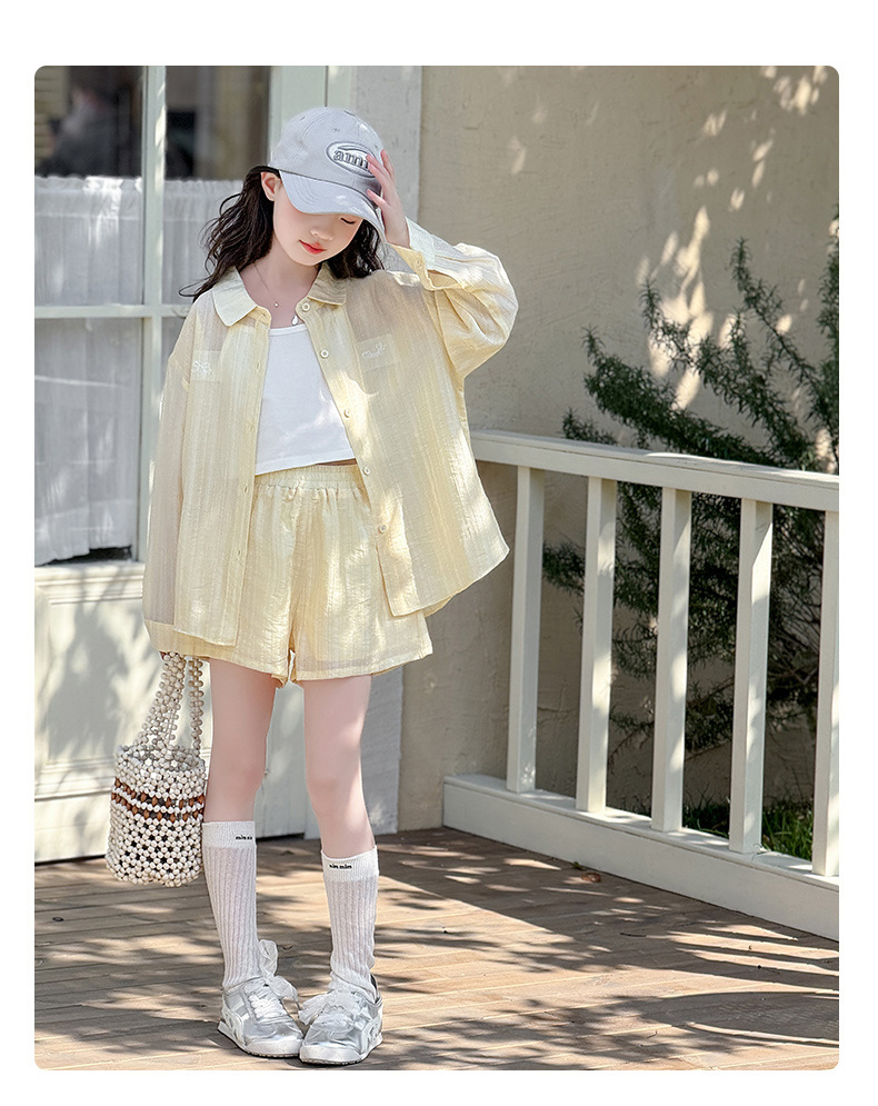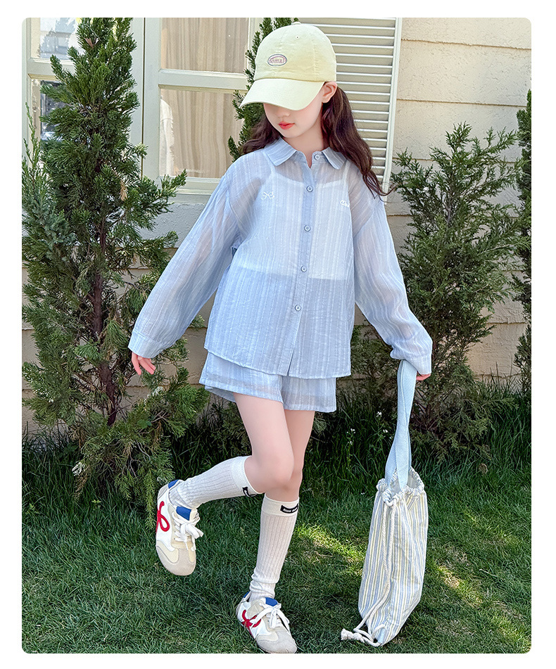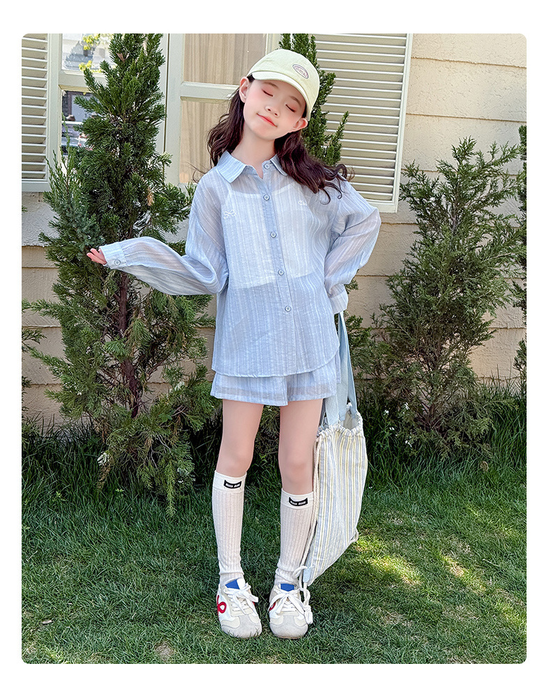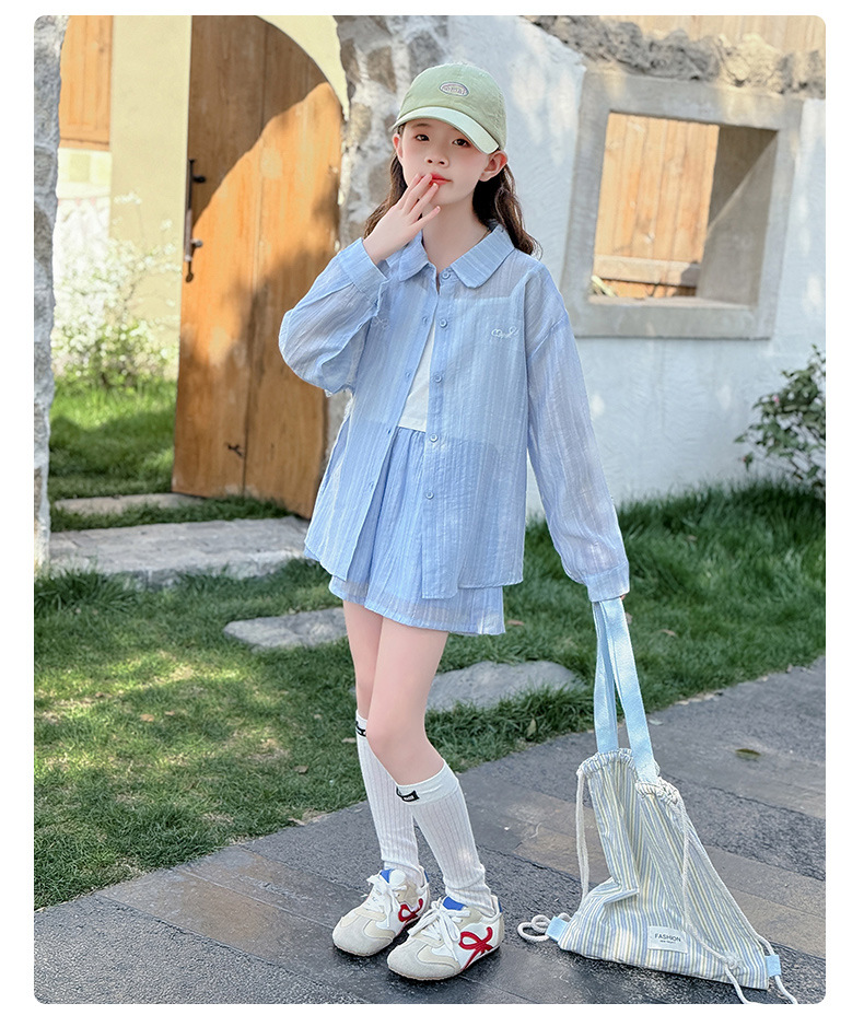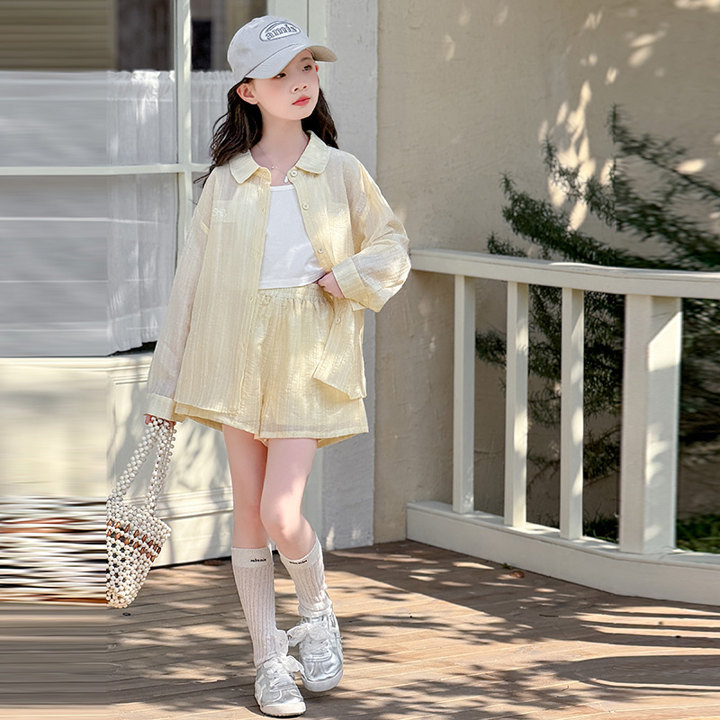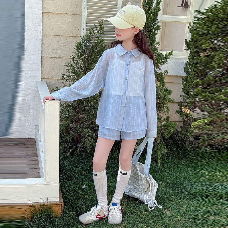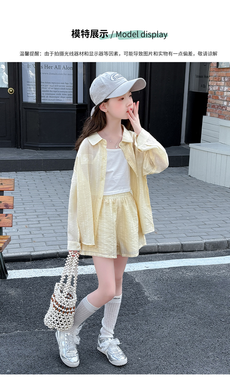 여아 한국 여름 자외선 차단복 2025 새로운 스타일 재킷과 반바지 캐주얼 자외선 차단 3종 세트