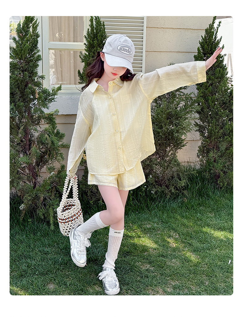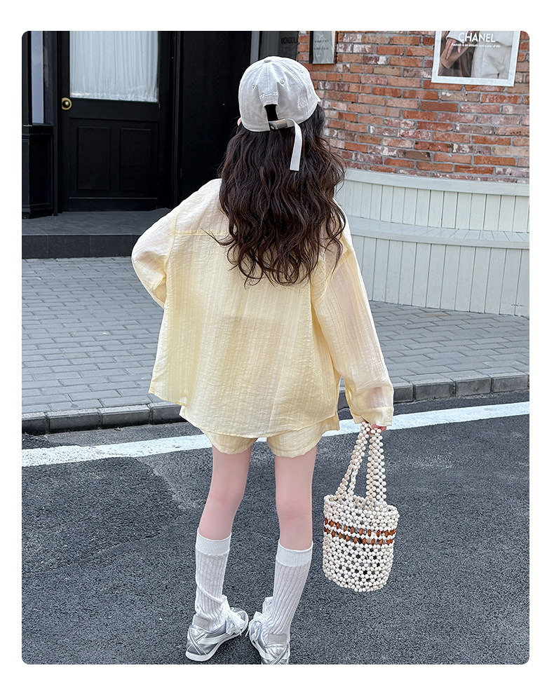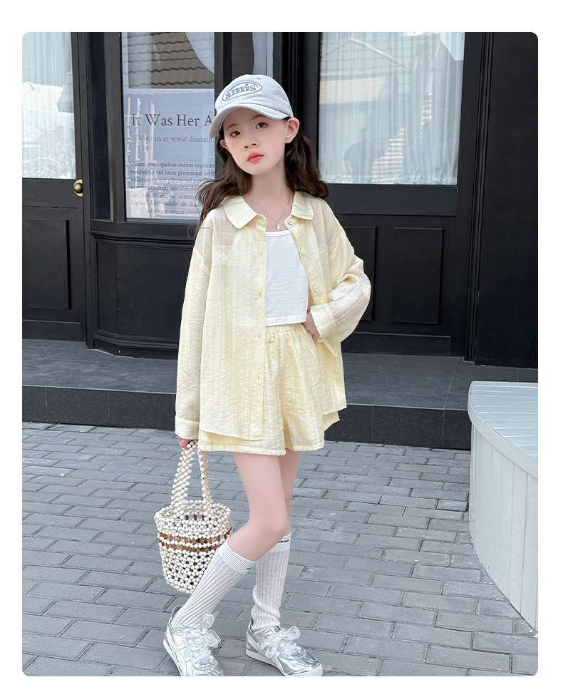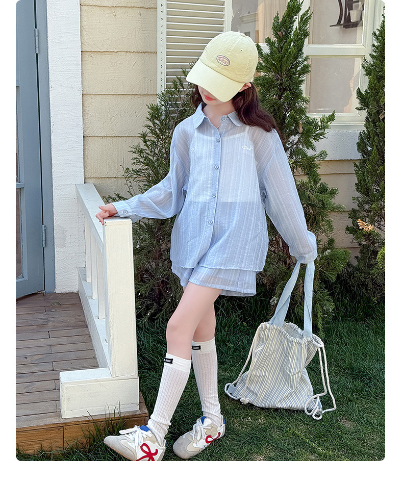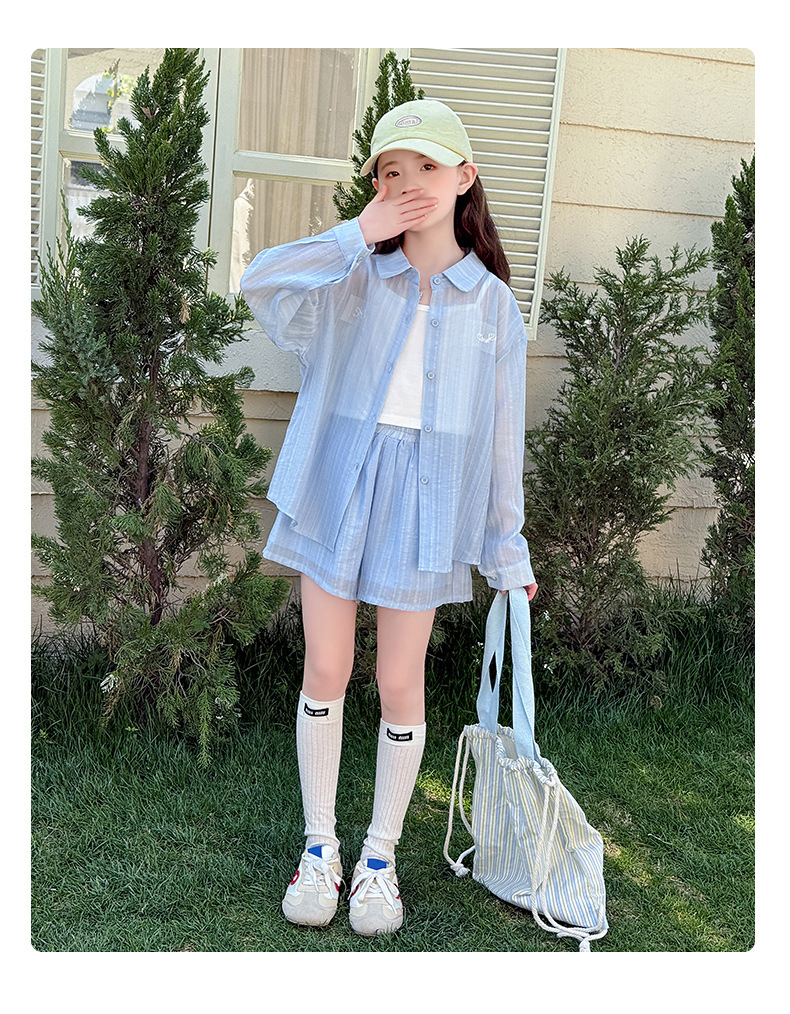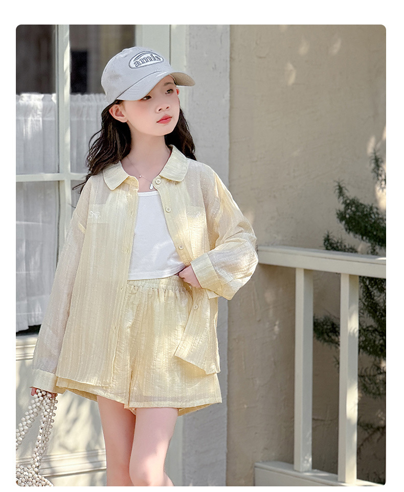 여아 한국 여름 자외선 차단복 2025 새로운 스타일 재킷과 반바지 캐주얼 자외선 차단 3종 세트