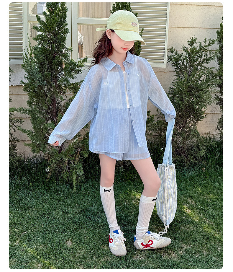여아 한국 여름 자외선 차단복 2025 새로운 스타일 재킷과 반바지 캐주얼 자외선 차단 3종 세트스토어 가기