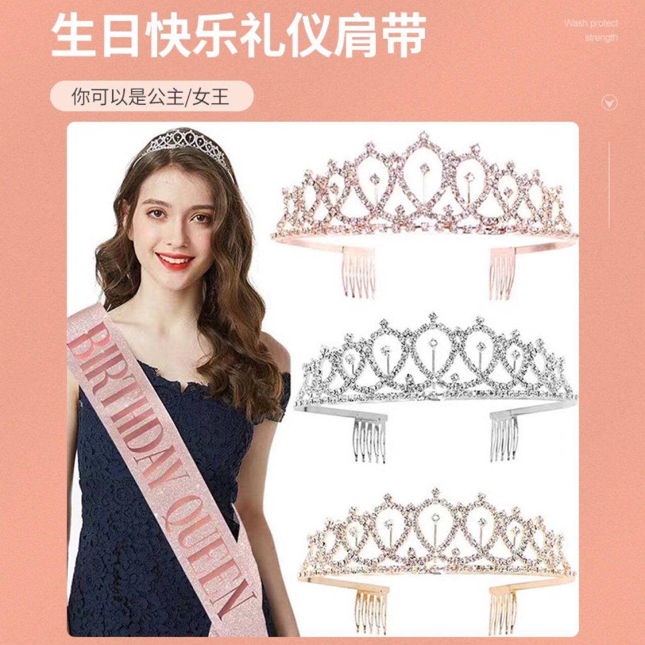생일 어깨 스트랩 크라운 헤드웨어 어깨 스트랩 리본 장식 소녀 분위기 소품 파티 사진 온라인 연예인 장면 천스토어 가기